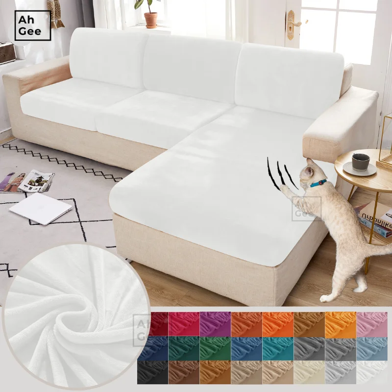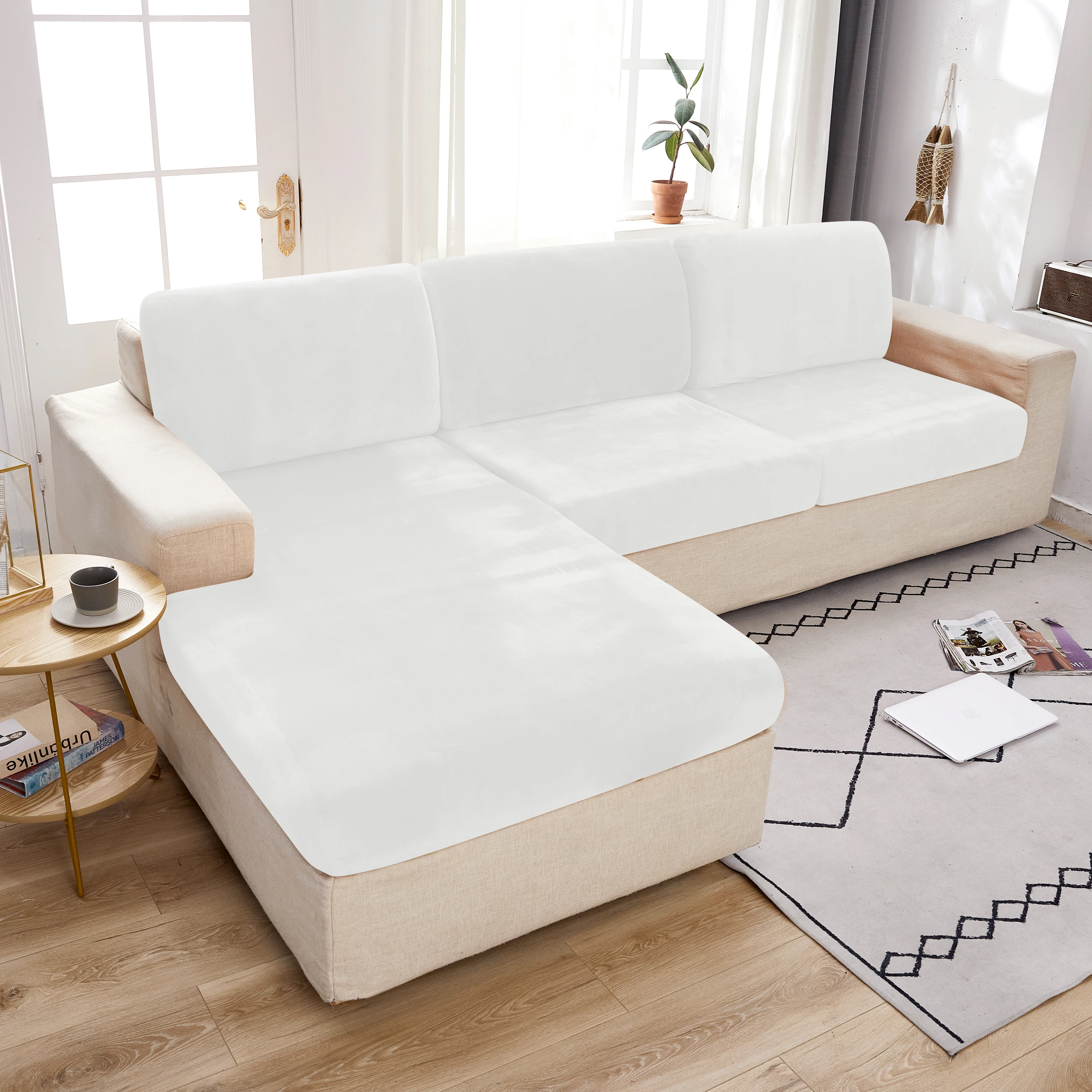 Чехол для дивана L-образной формы, эластичное покрытие для гостиной, бархатный белый однотонный чехол для дивана