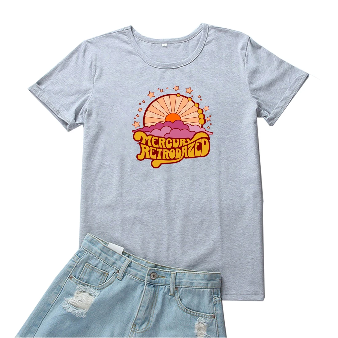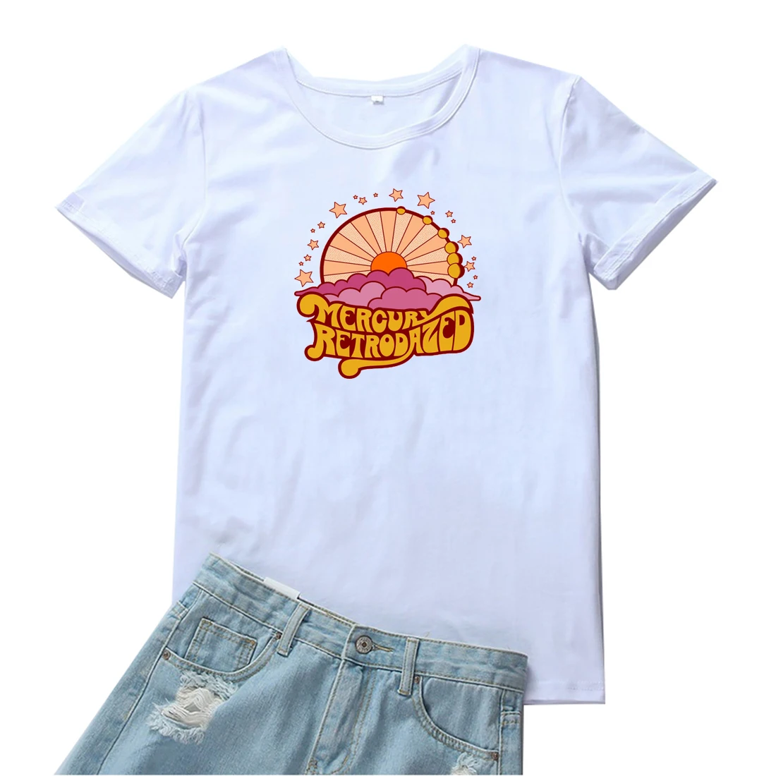 Mercurl Retrodazed футболка красивые женские с принтом в виде персонажей из мультфильмаs с принтом графических Футболка Модные женские ботинки черного цвета; Индивидуальная футболка женская уличная