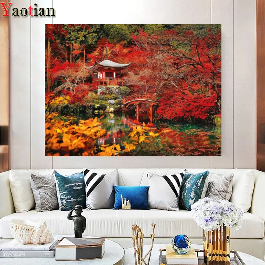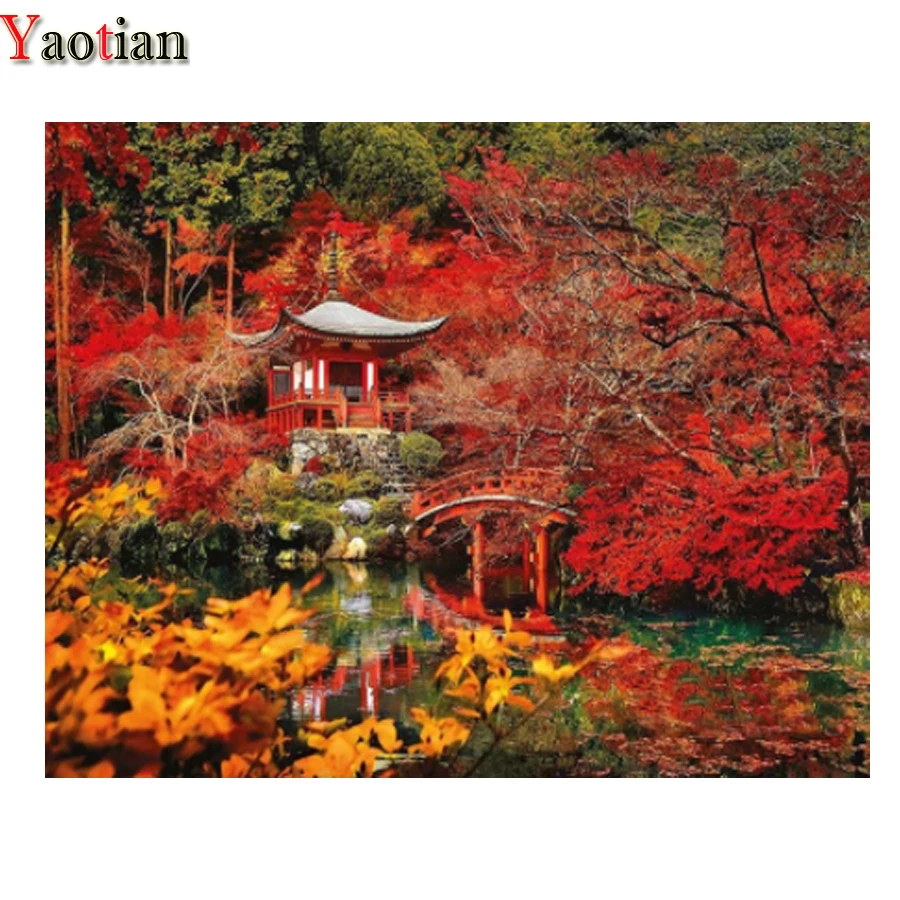 5d алмазная живопись, японский красный кленовый храм, сделай сам, алмазная вышивка, полная дрель, квадратный круглый осенний пейзаж, вышивка крестиком, Декор