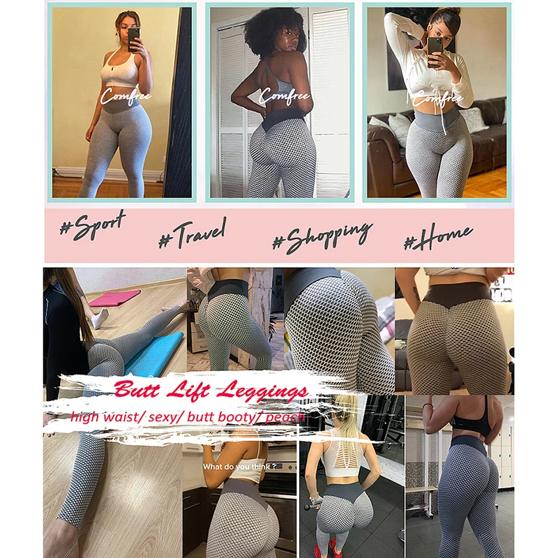 Женские Тренировочные обтягивающие леггинсы с высокой талией, утягивающие живот, подтягивающие ягодицы, текстурированные колготки, штаны для йоги