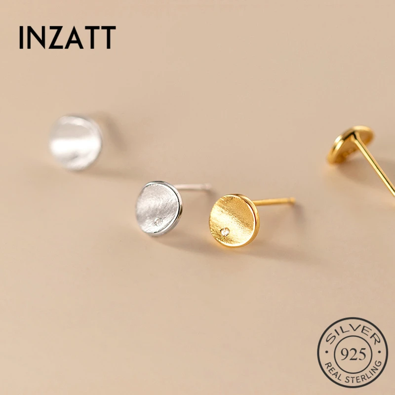 INZATT реальные 925 Стерлинговое Серебро Циркон Круглой Формы Серьги гвоздики для женщин, мода для женщин, хорошее ювелирное изделие, в минималистском стиле панк аксессуары