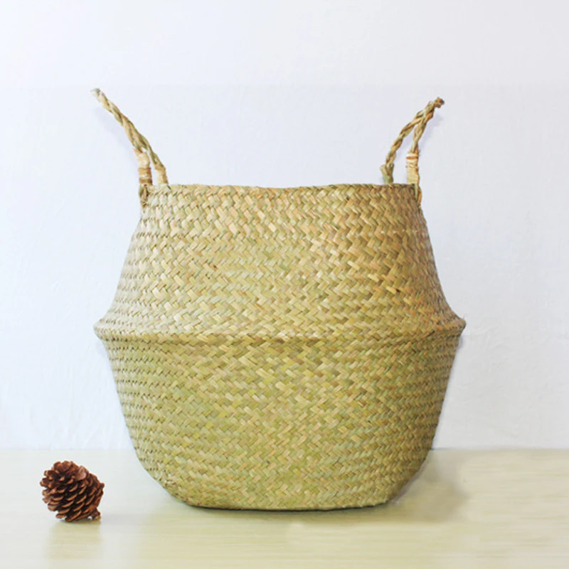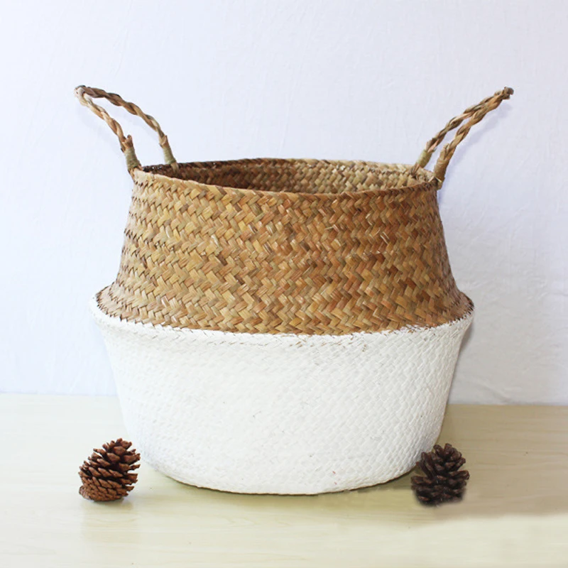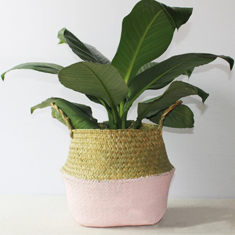 Бамбуковые корзины для хранения, складной ротанговый бытовой корзина для белья, плетеный цветочный горшок из морских водорослей для сада