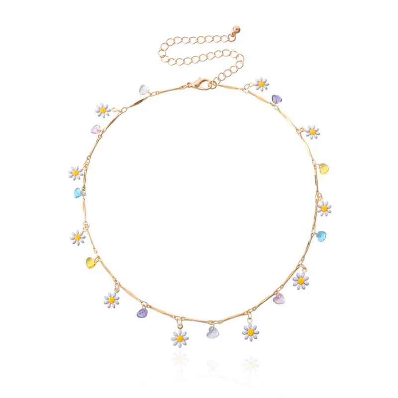 Ожерелье-чокер женское, короткое, разноцветное, с цветами маргариток, из бисера, украшения для отдыха