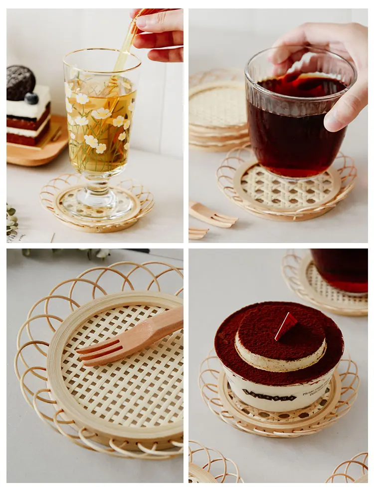 Прочные подставки для чашек ручной работы бамбуковые тканые полые к...