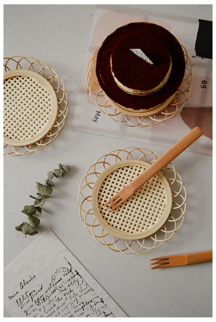 В японском стиле бамбуковое подставка из ротанга, плетеная блюдце, ...