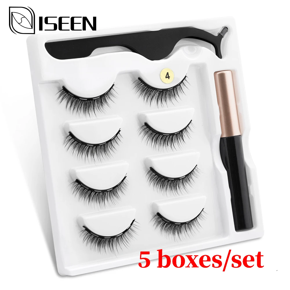 ISEEN, 5 коробоккомплект, оптовая продажа, магнитные ресницы 3D, норковые ресницы, магнитная подводка для глаз, водонепроницаемый короткий фотомагнитный инструмент для макияжа