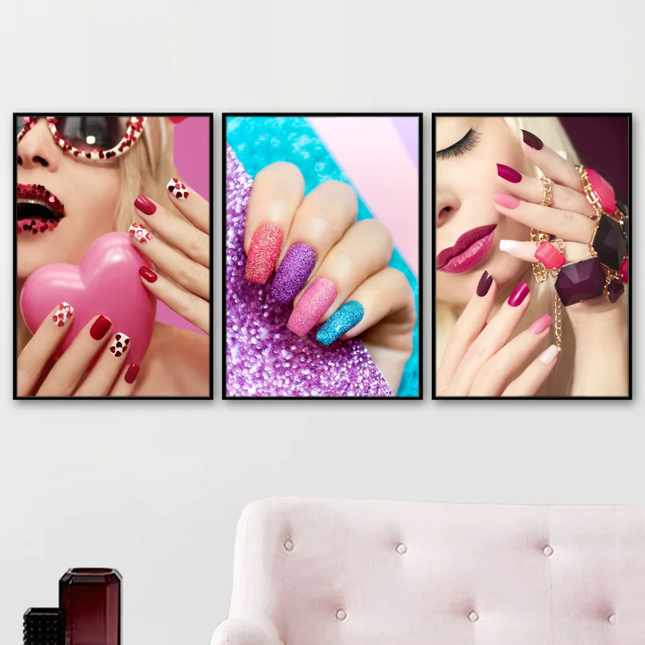 Модный Красочный маникюрный салон, настенная Картина на холсте, ска...