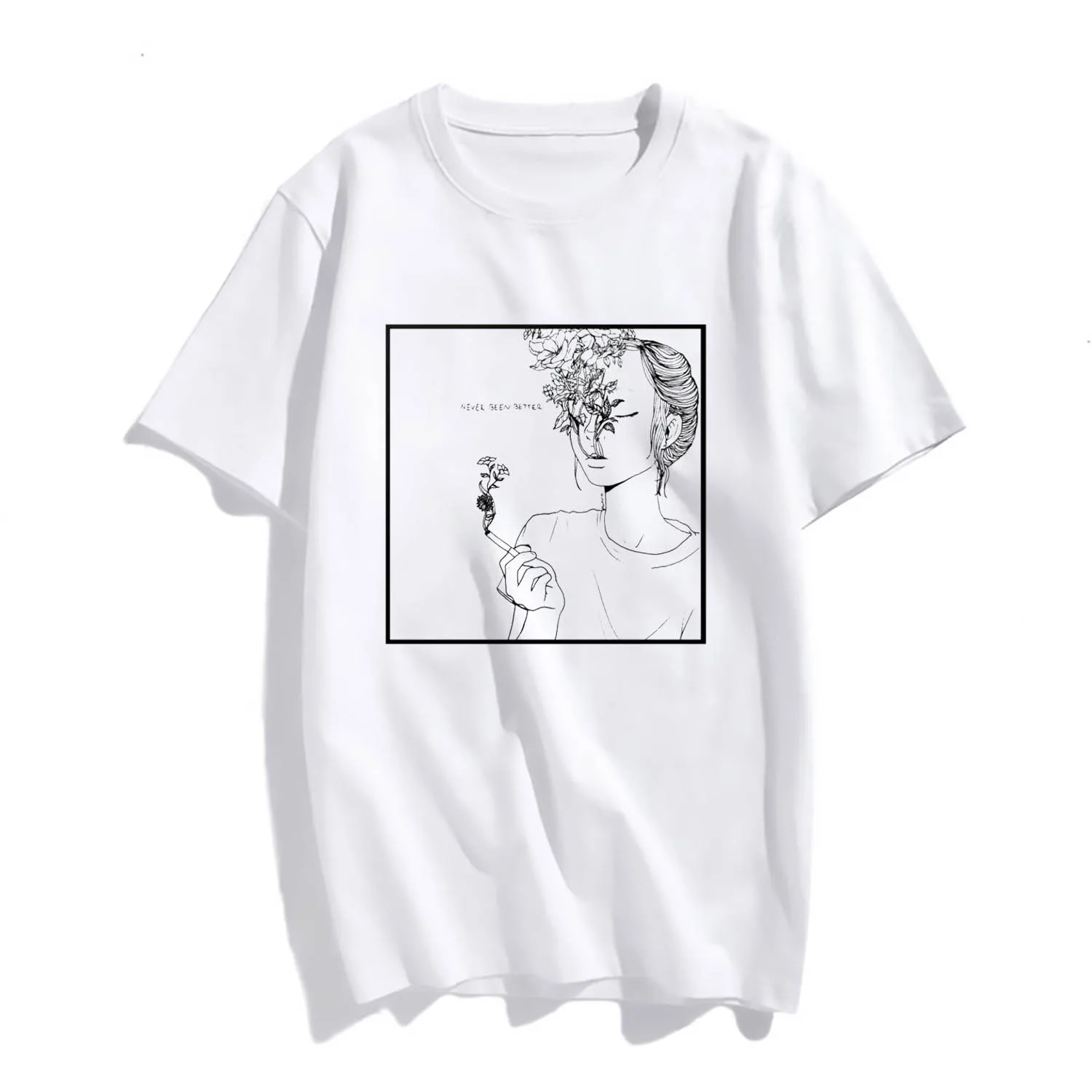 Женская футболка с геометрическим принтом, белая Винтажная футболка...