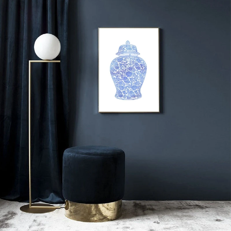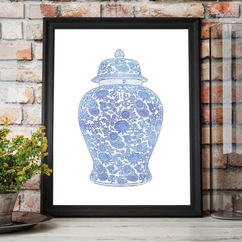 Китайская Имбирная банка с принтом сине-белого цвета, китайская водолазная живопись, Настенная картина, Постер в стиле Хэмптона, Декор