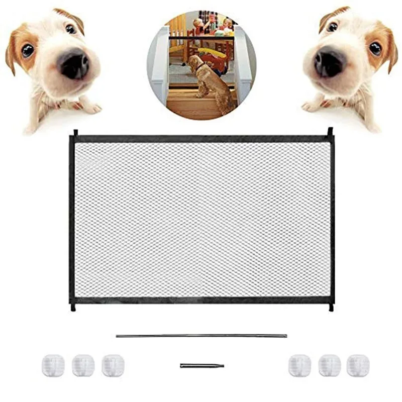 Магические ворота для домашних питомцев, черная портативная сетчатая Складная Защитная ограда, изолированные ворота для маленьких собак, марлевые ворота, принадлежности для питомцев