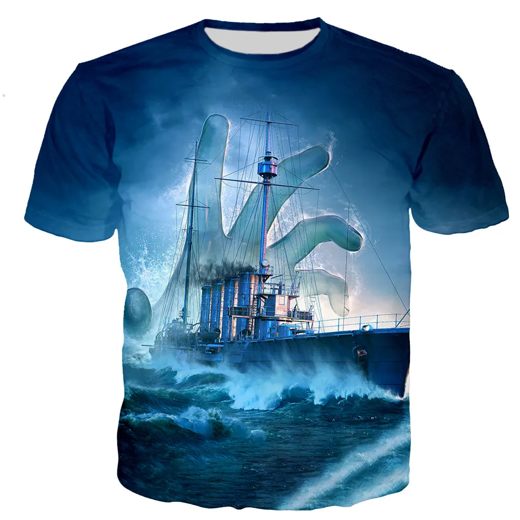 Лето 2021, модная одежда для рыбалки, футболка с 3D принтом акулы, ...