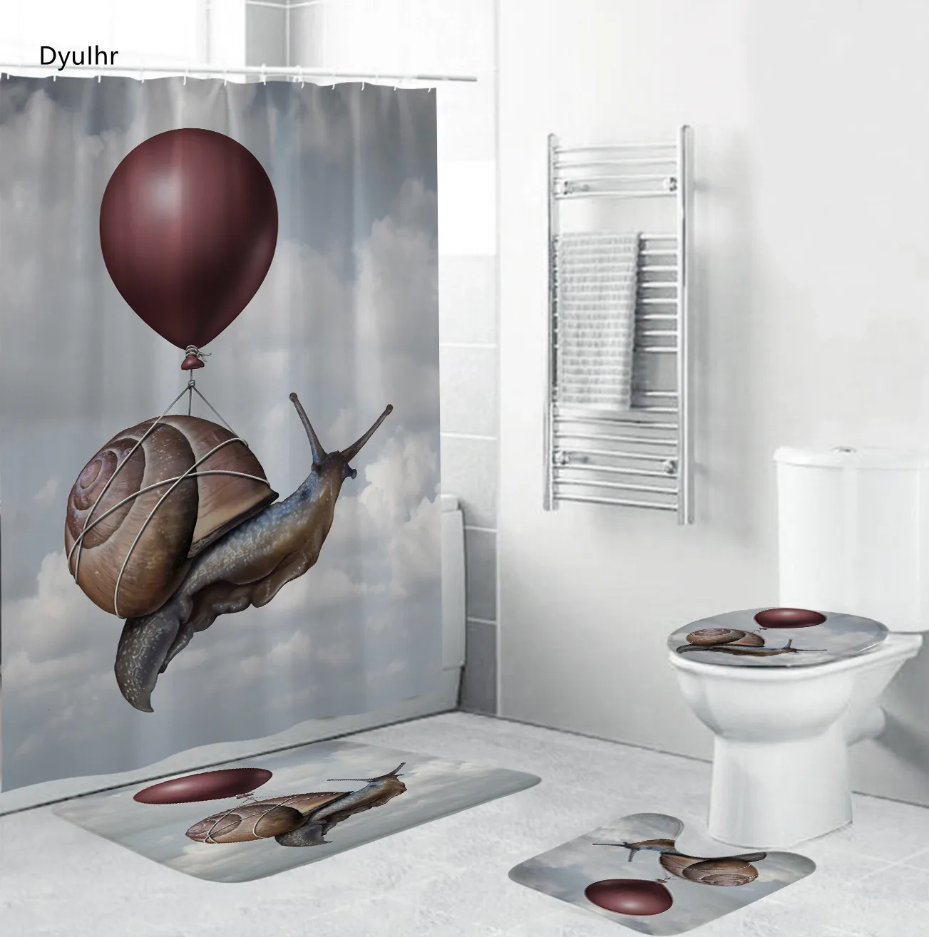 Аксессуары для ванной комнаты, Современная Минималистичная душевая занавеска в виде улитки, нескользящий ковер, подушка для сиденья унитаза, комплект для ванной комнаты DyuIhr