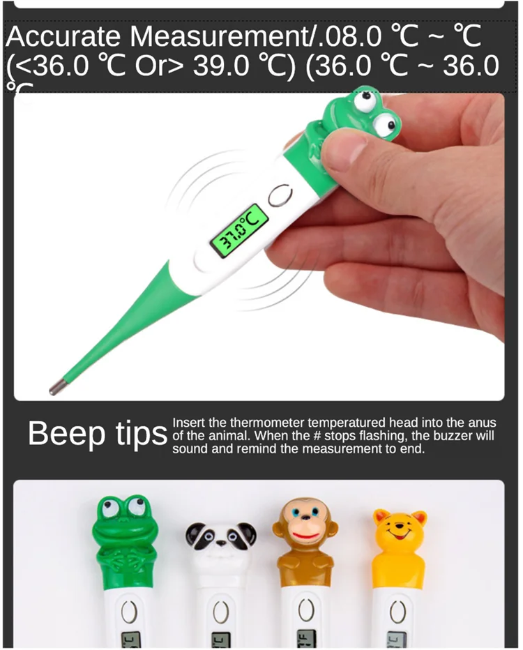 Цифровой светодиодный термометр для домашних животных, милый ветеринарный термометр для тела с рисунками из мультфильмов, водонепроницаемый, для собак, лошадей, кошек, свиней, овец, мягкий инфракрасный