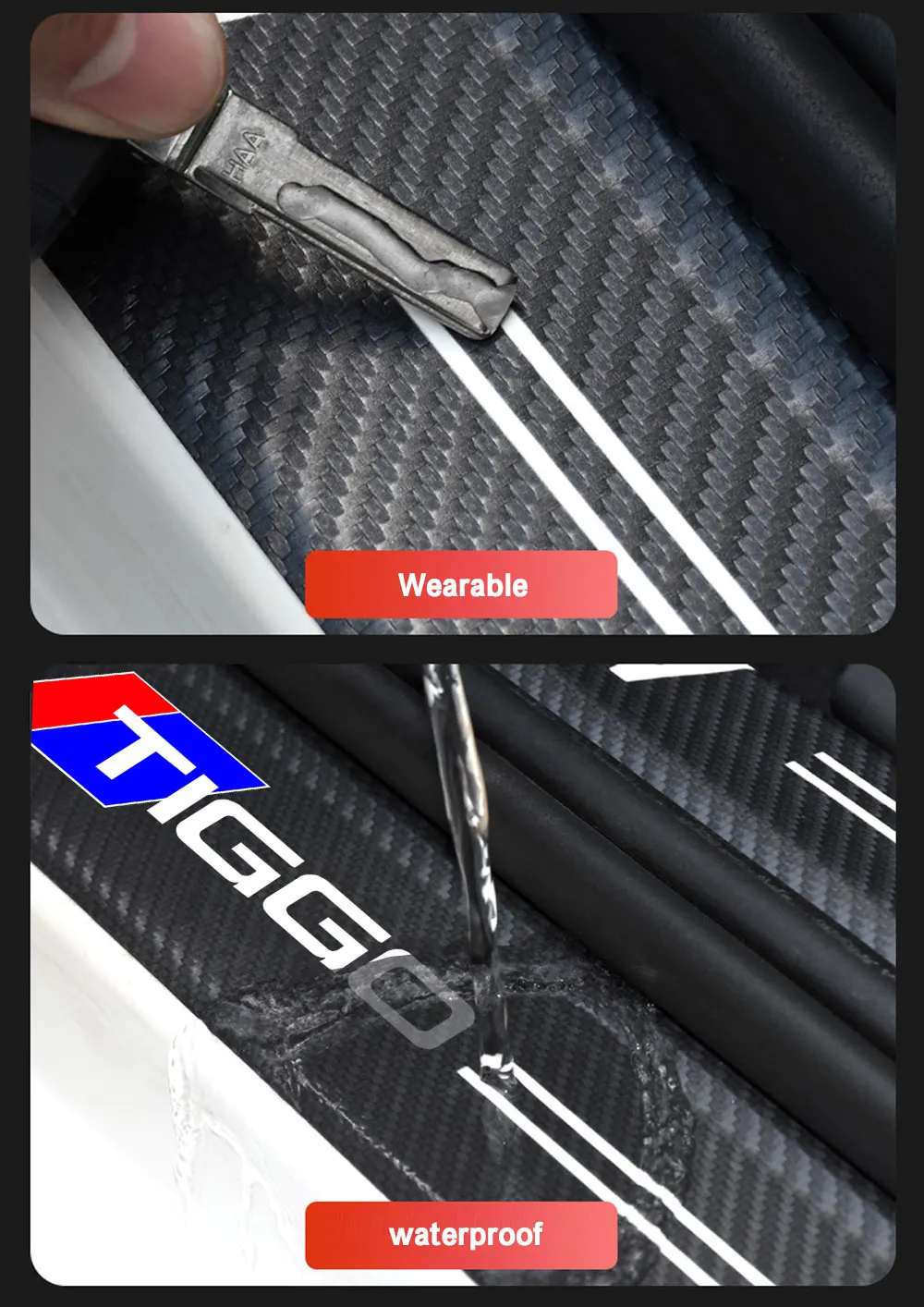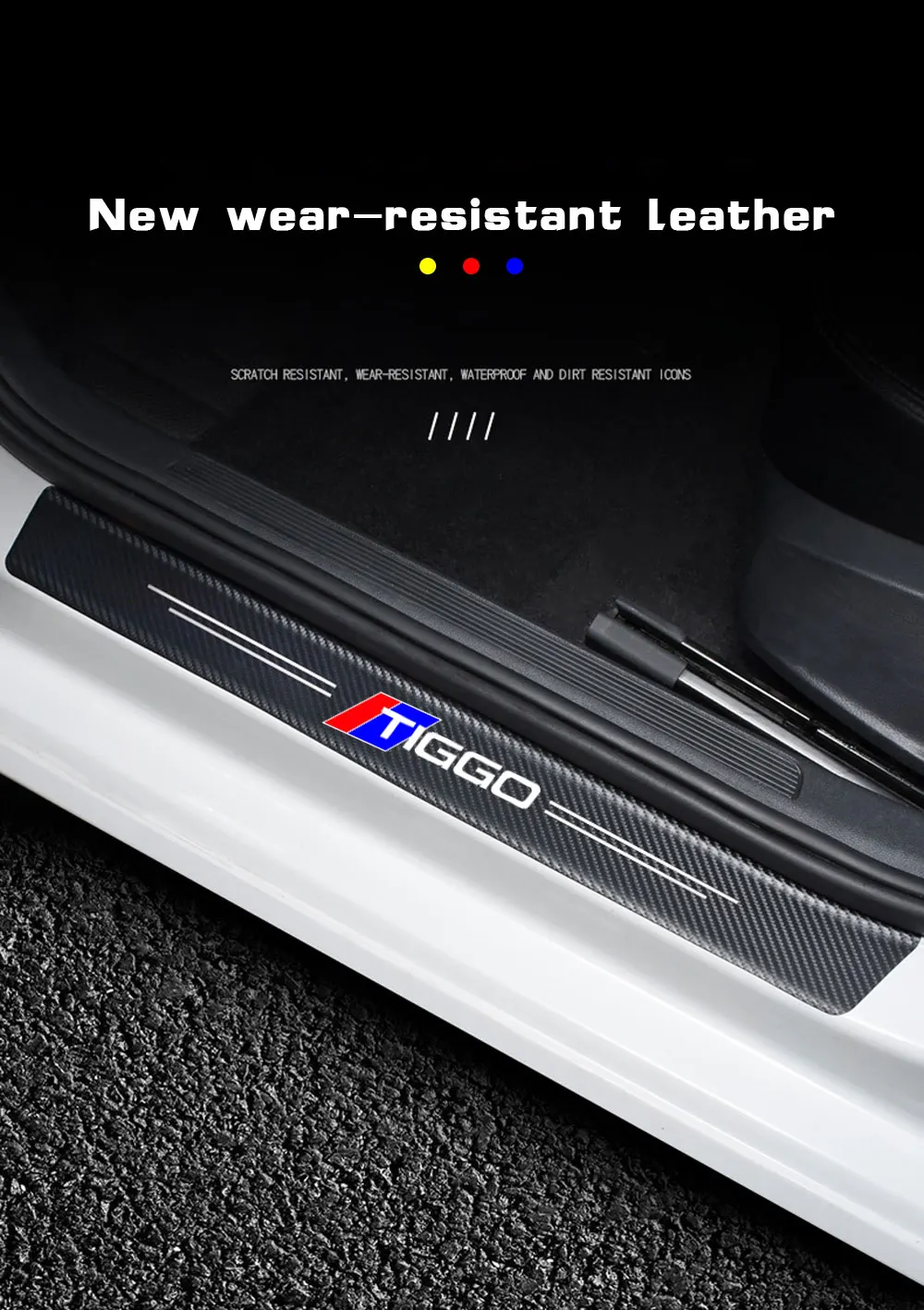 4 шт., автомобильная наклейка на дверь, углеродная кожа, волоконный порог, пластина для CHERY TIGGO 3 4 5 7 PRO 8, наклейки, аксессуары, защитные наклейки