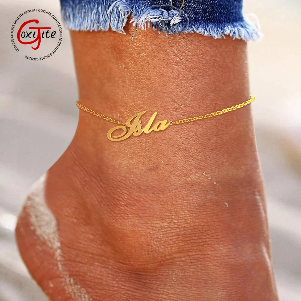 Женские браслеты на ногу Goxijite, золотистые, серебристые браслеты на ногу из нержавеющей стали, на заказ