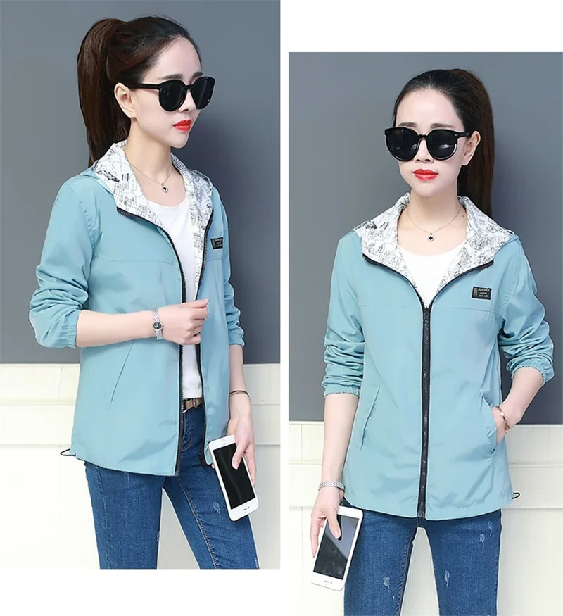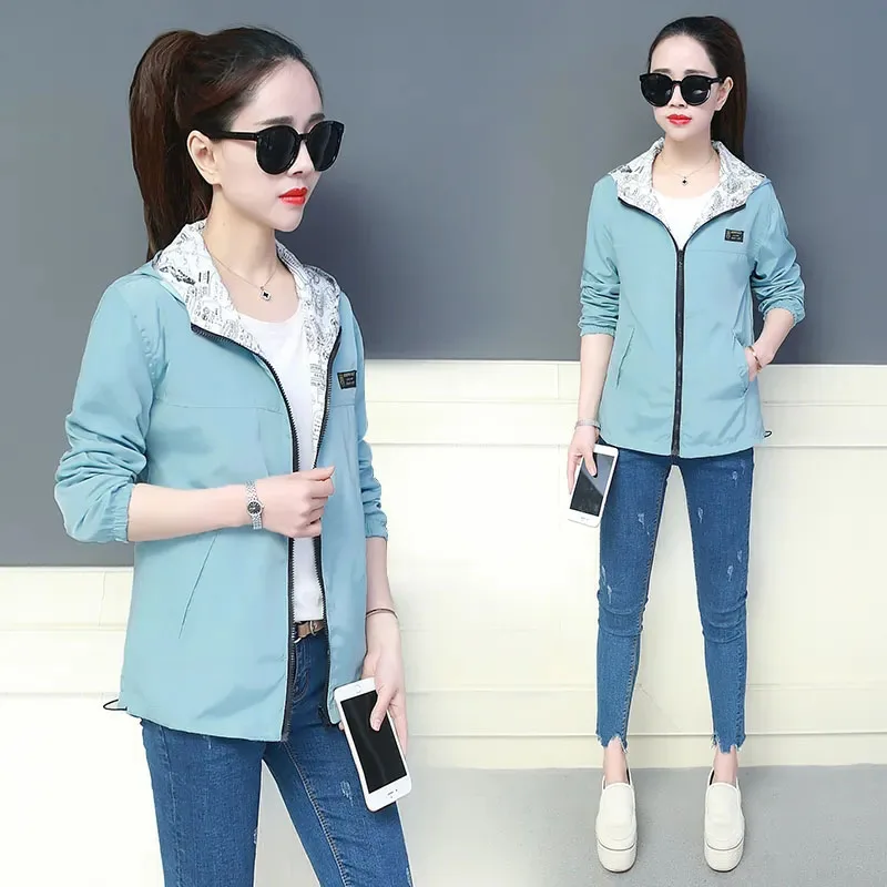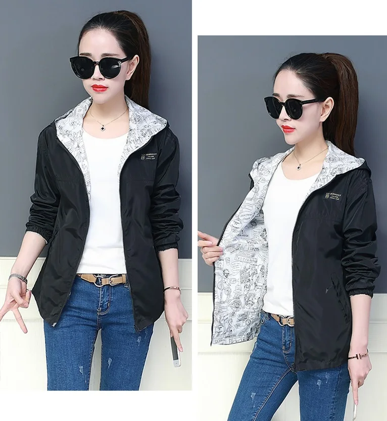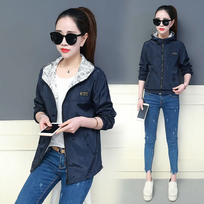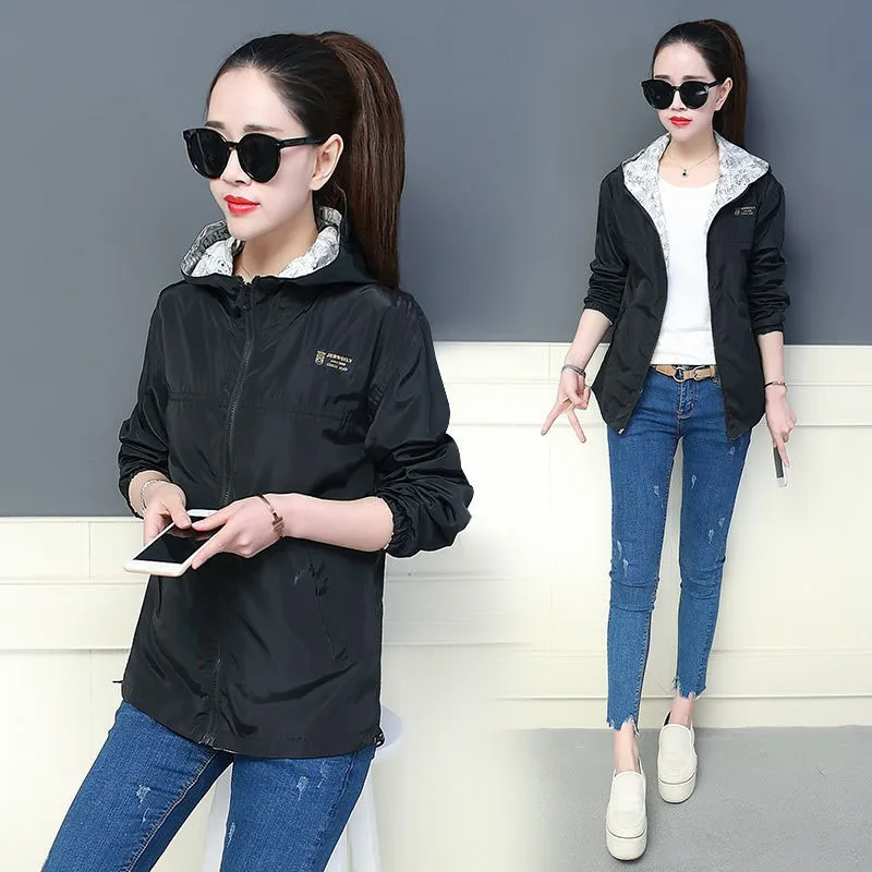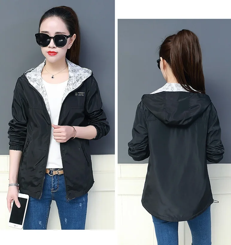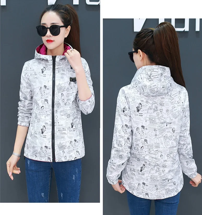 Куртка Женская Базовая с капюшоном, модная двухсторонняя верхняя одежда с принтом, ветровка свободного покроя, весна-осень 2022