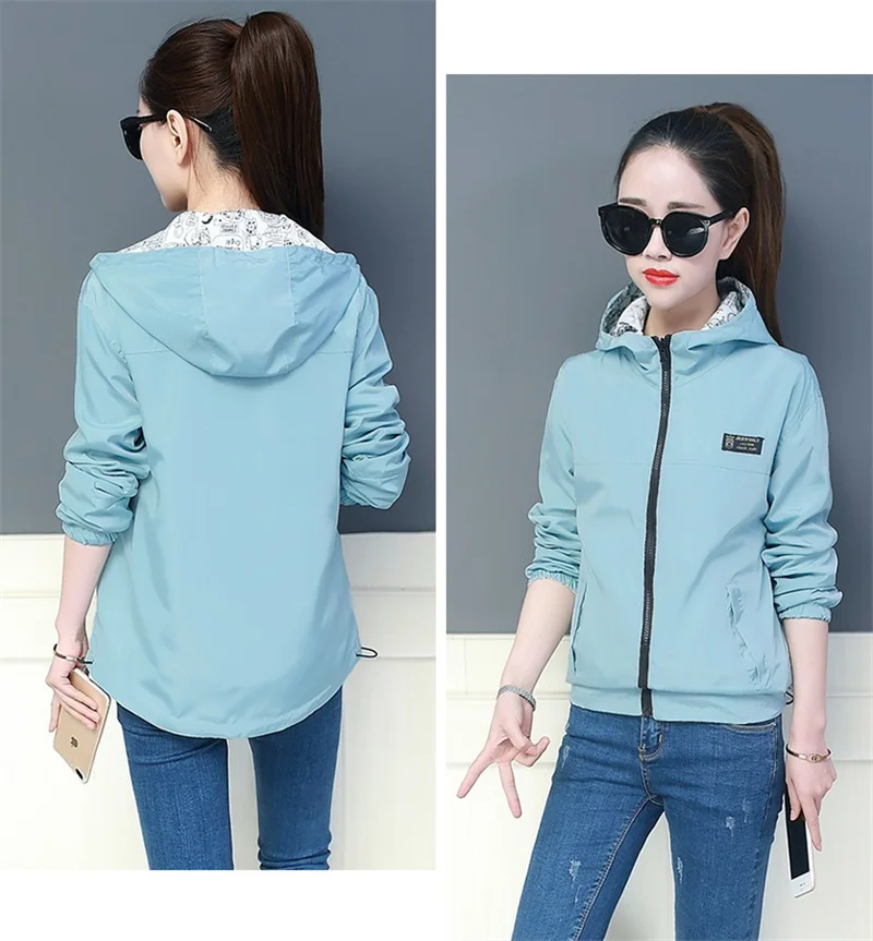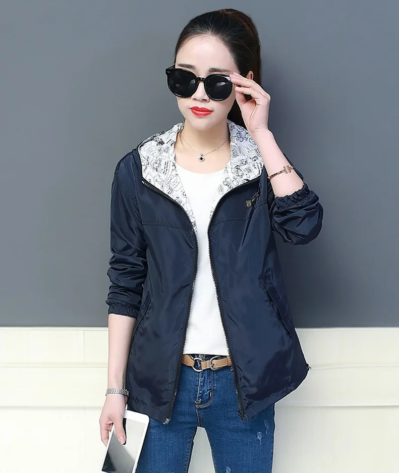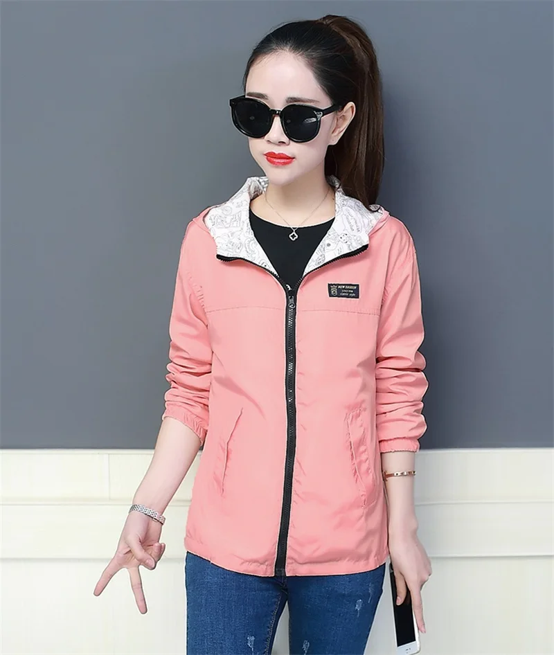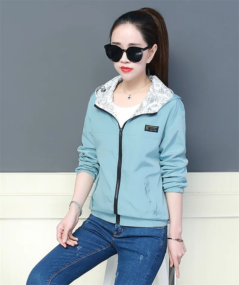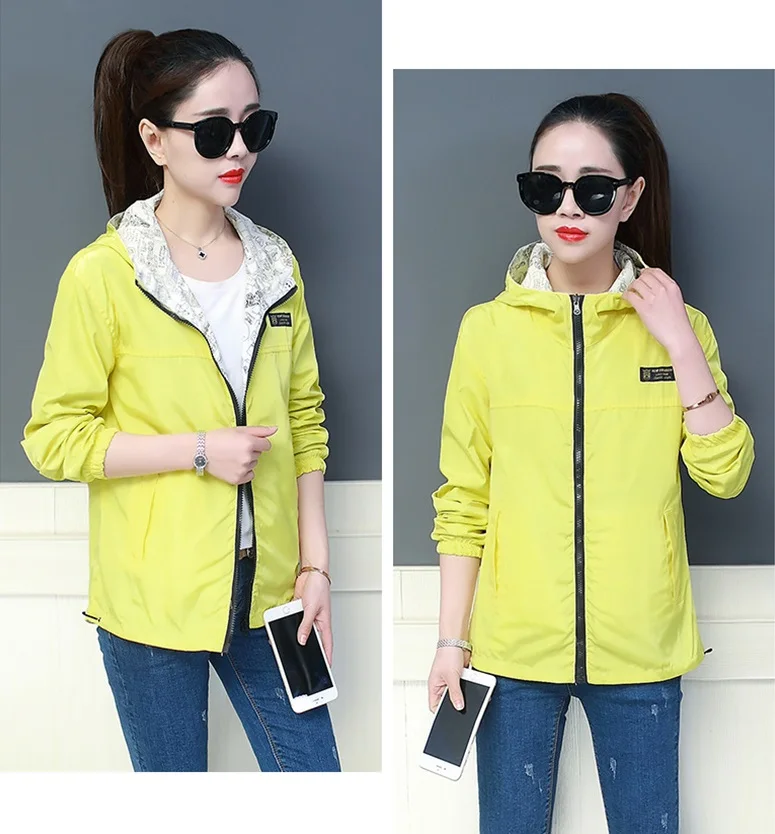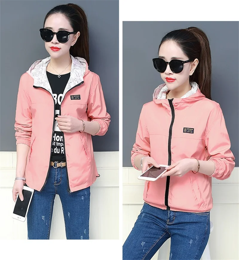 Куртка Женская Базовая с капюшоном, модная двухсторонняя верхняя одежда с принтом, ветровка свободного покроя, весна-осень 2022