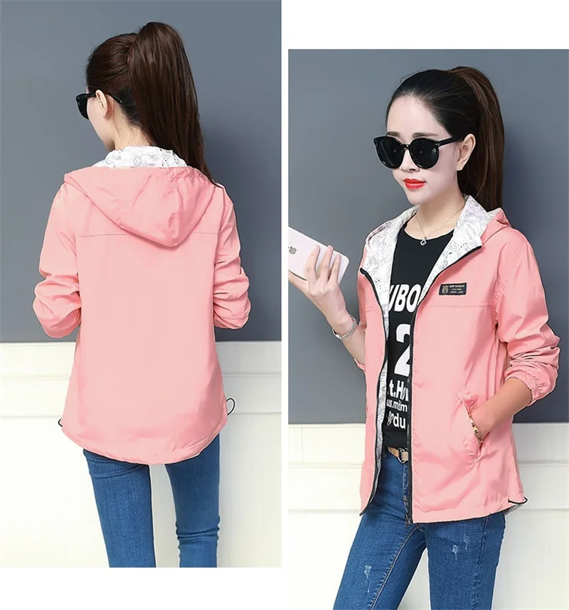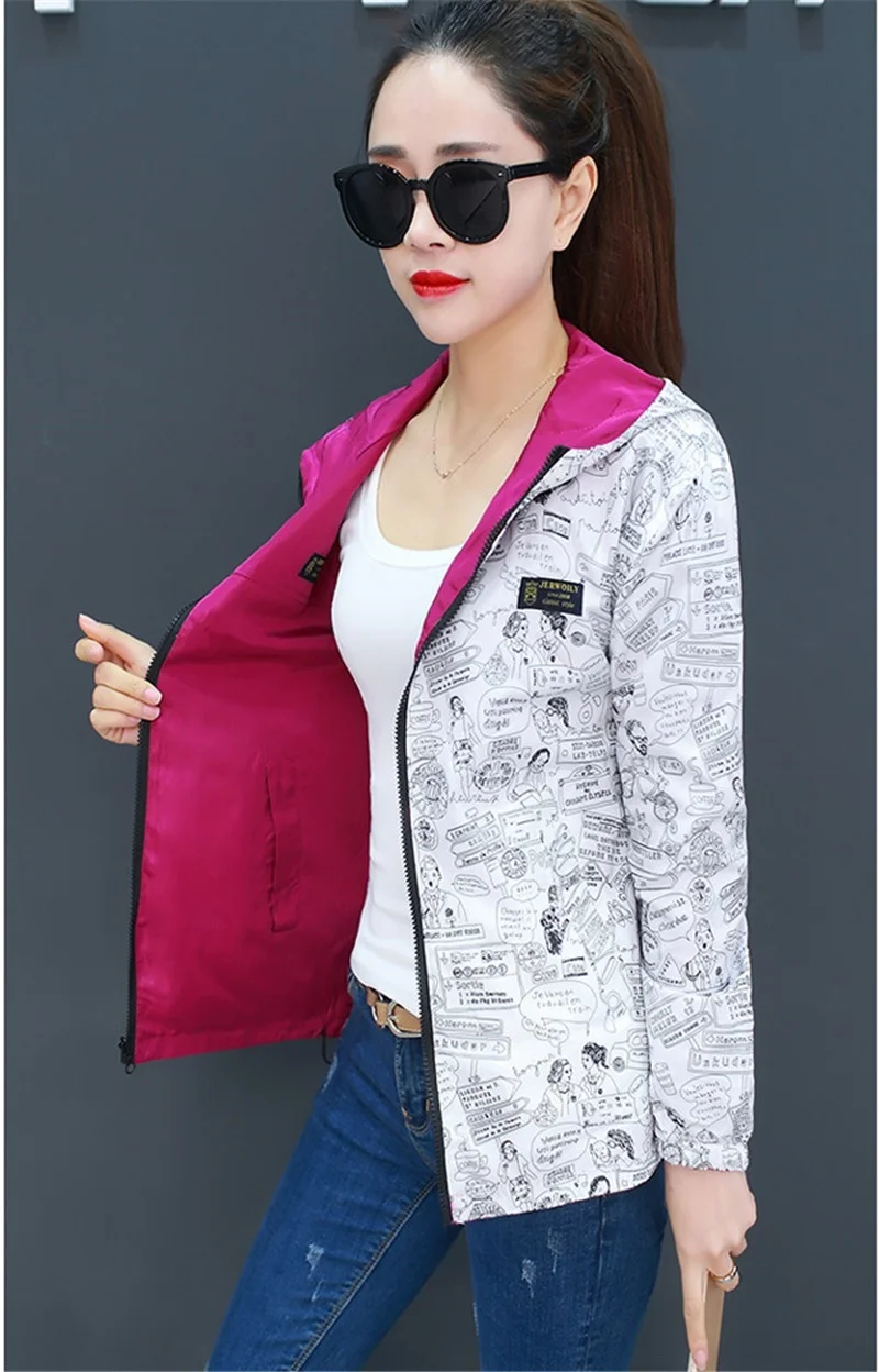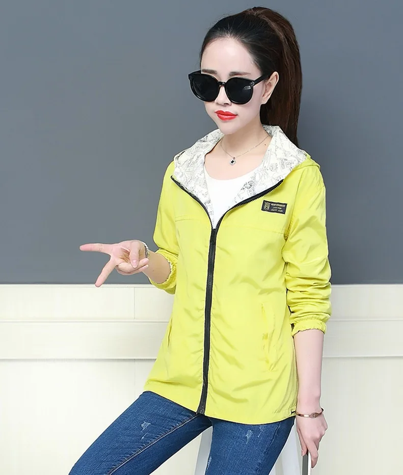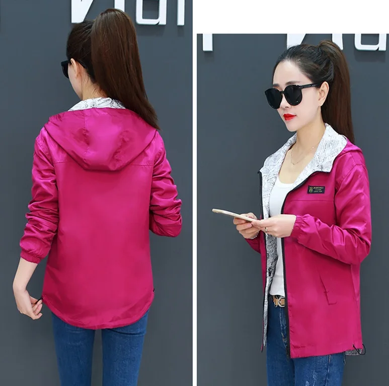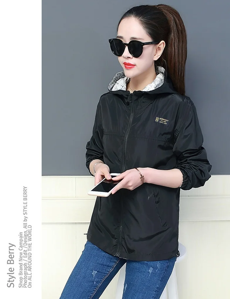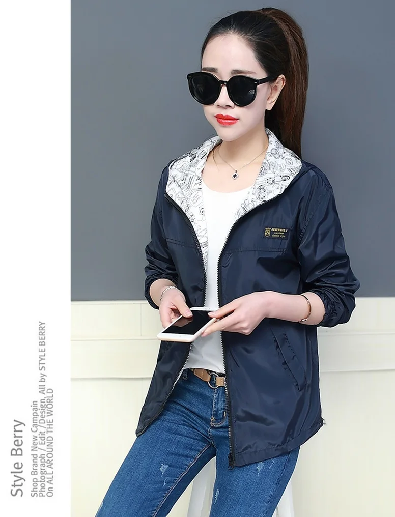 Куртка Женская Базовая с капюшоном, модная двухсторонняя верхняя одежда с принтом, ветровка свободного покроя, весна-осень 2022