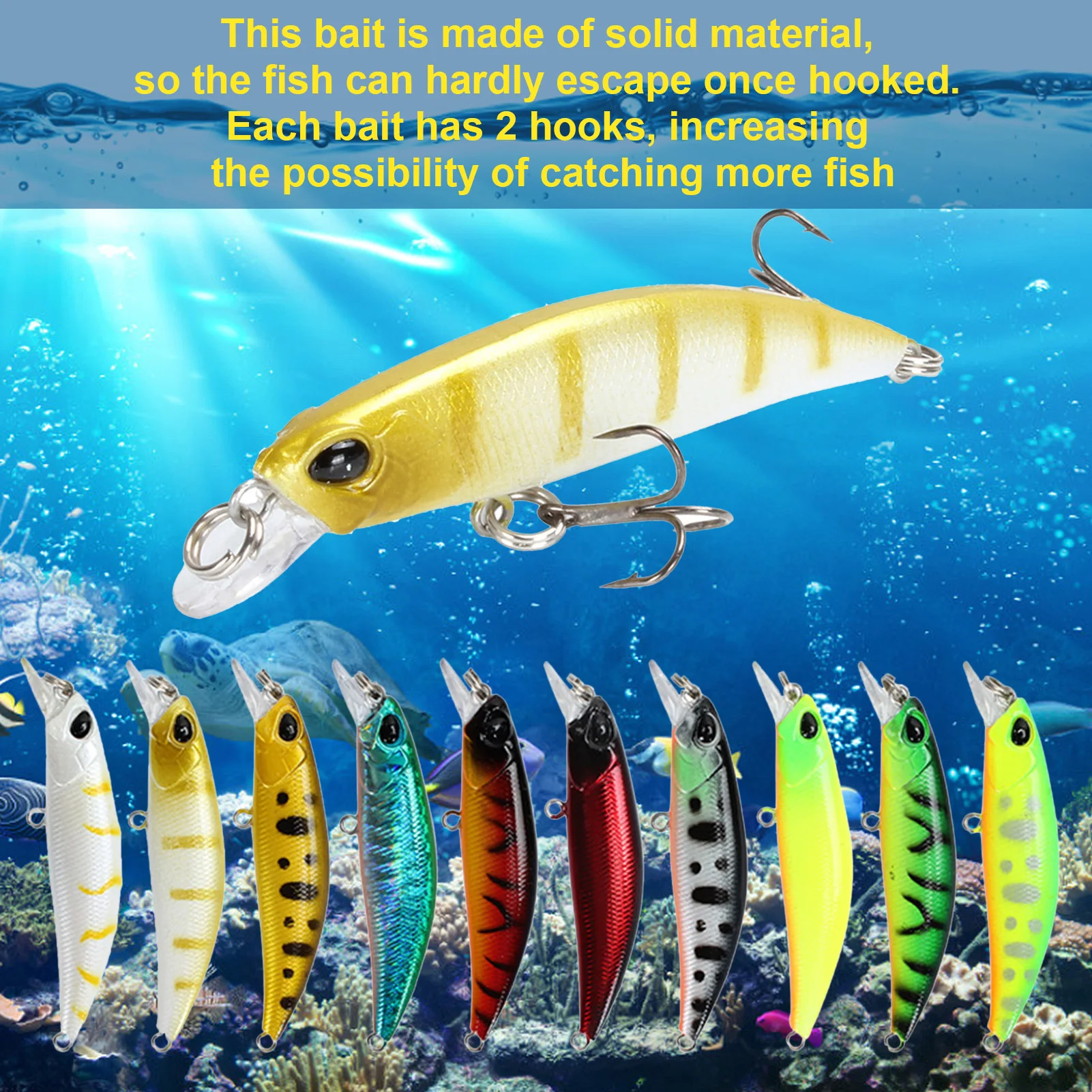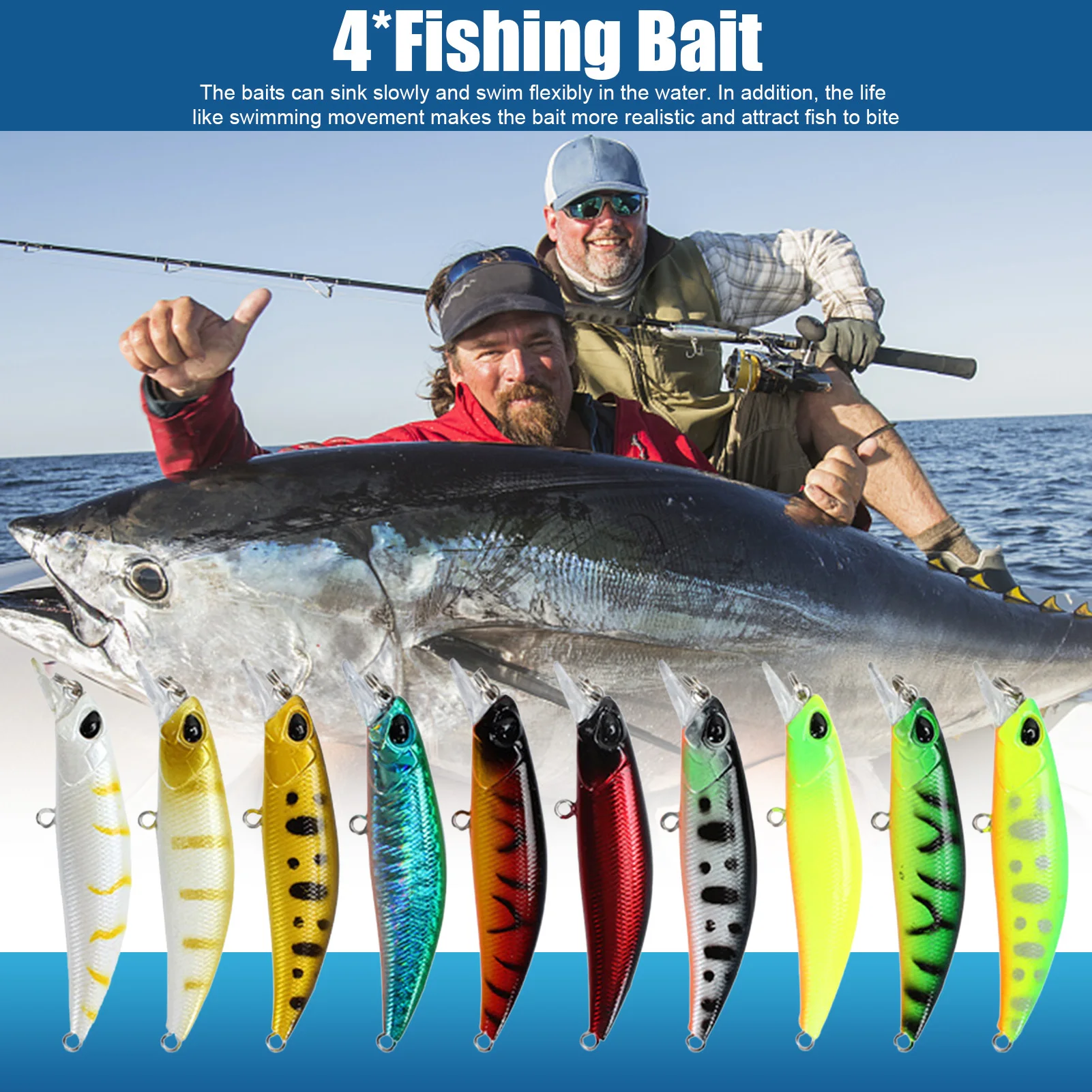 10 видов искусственных, плавающих рыб в соленой воде, пресноводная приманка 8 # с тремя крючками из высокоуглеродистой стали, случайный цвет, 4 шт.