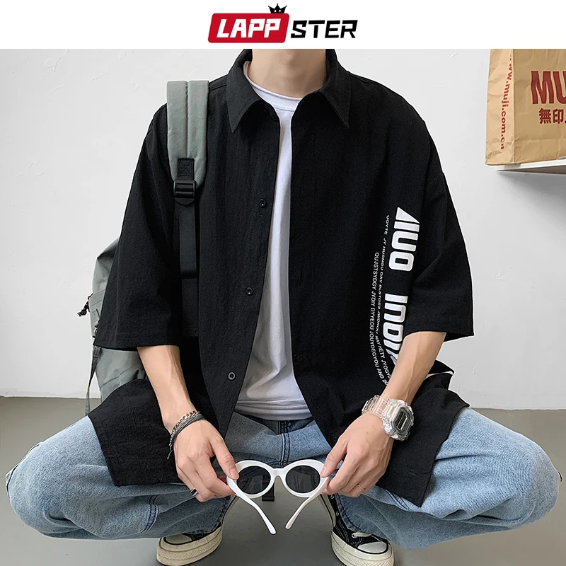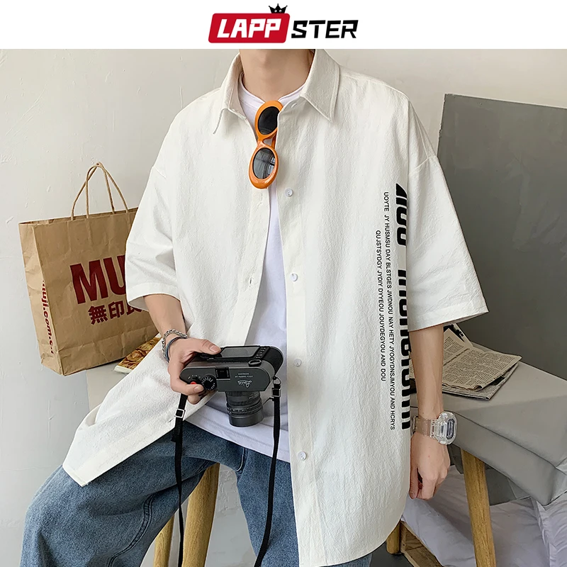 Рубашка LAPPSTER Мужская в стиле Харадзюку, дизайнерская винтажная уличная одежда в японском стиле, модная в Корейском стиле, размеры до 5XL, лето 2022