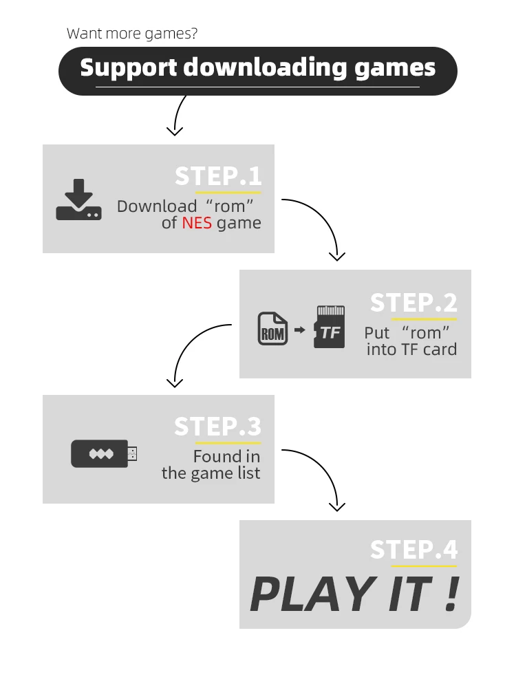 Скачать URL игры:http://www.freeroms.com/gameboy_color.htmhttp://romhustler.net/roms/psxШаг 1:Download''rom''of NES game.Шаг 2: put'rom'' в tf-карту.Шаг 3: в списке игр.Шаг 4: играйте!