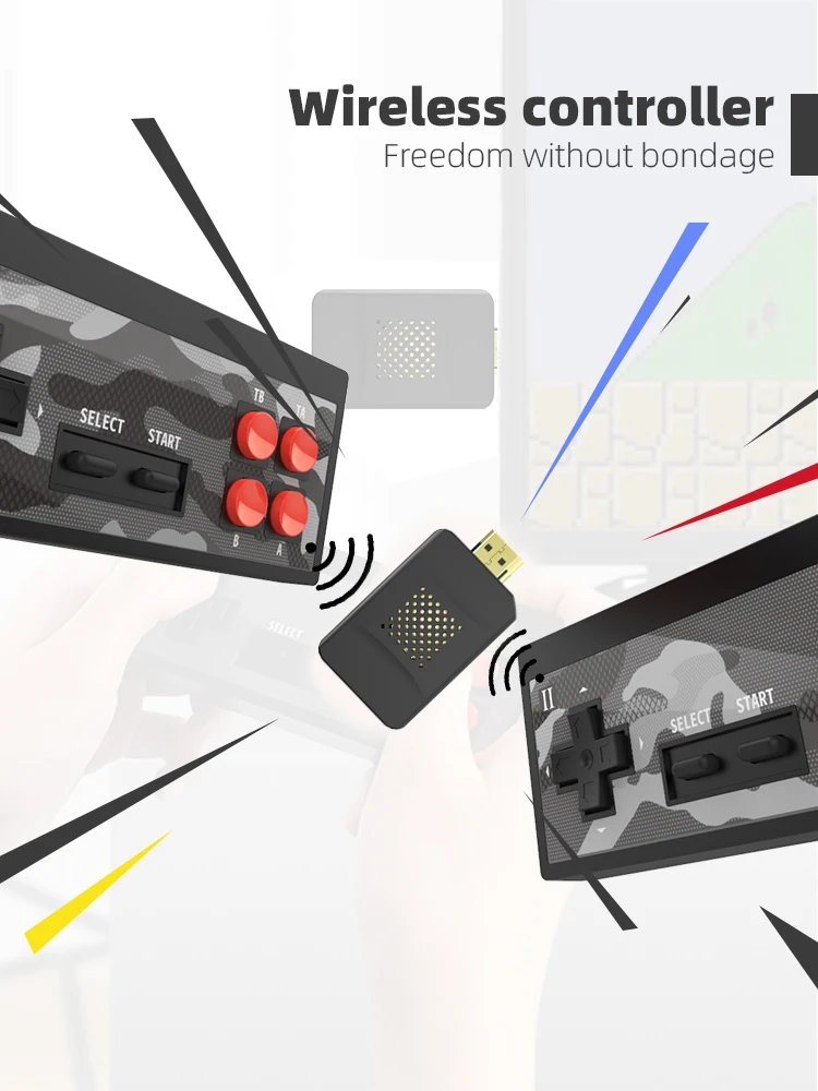 С детским весельем и воспоминаниями для этого контроллера видеоигр, это хорошие воспоминания поколения 80s и 90s. Эта игровая машина тщательно построила 900 классических игр. Беспроводной контроллер позволяет играть в игры плавно. Поддержка двух человек для игры войны, это очень весело! Контроллер с 6 кнопками funtion, супер игровой опыт!