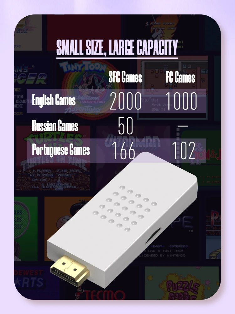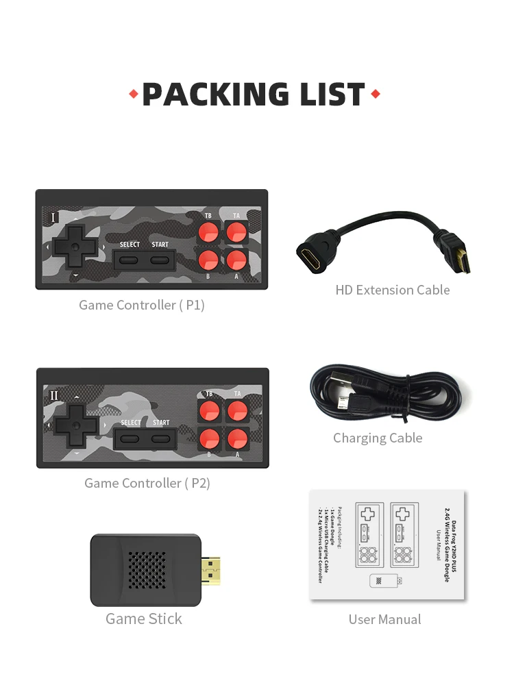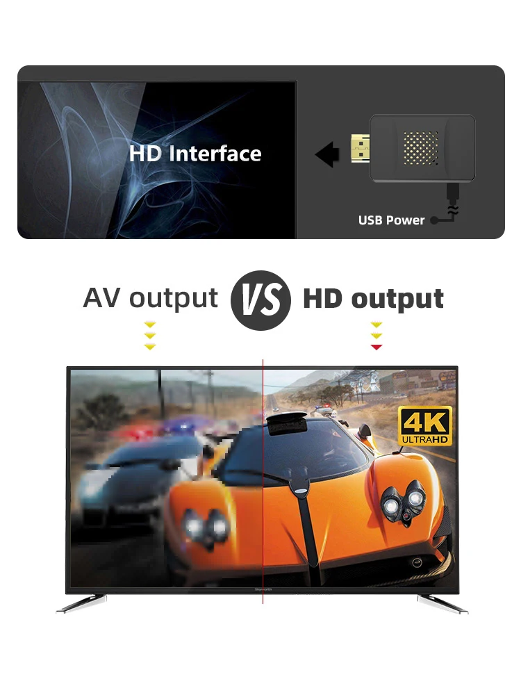 Маленькая и мощная мини-игровая палка-это только размер флеш-накопителя USB. Он содержит высокопроизводительный игровой чип, мощную вычислительную мощность и поддерживает 1800 игр NES, чтобы работать плавно. 4K HDMI-совместимый дисплей, Наслаждайтесь игрой с семьей и друзьями. Вы также можете скачать любимые игры, просто скачайте игру на tf-карту, но поддерживает только игры в формате NES.Noice:Y2S HD консоль не поддерживает загрузку игр.