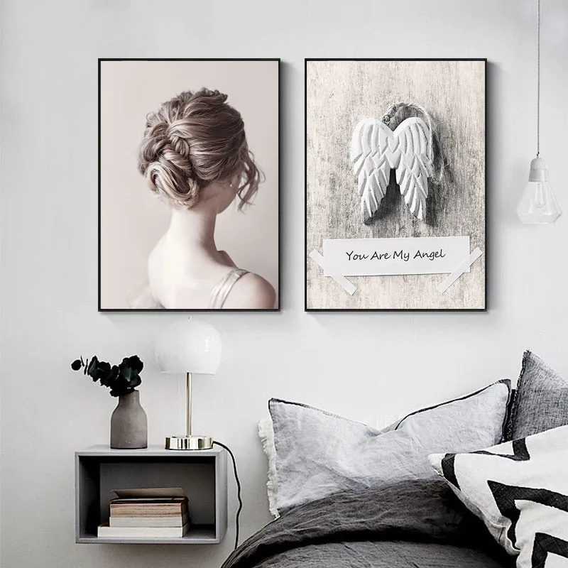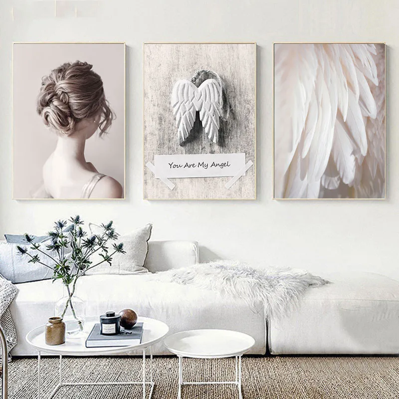 Современная модная Картина на холсте светло-розовые крылья ангела, картина с перьями, художественный плакат, картины для украшения стен дома