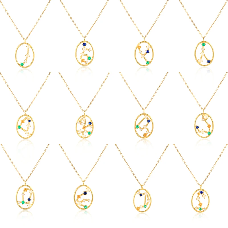 AIDE 925 Серебряное ожерелье 2021 тренд с яркими кристаллами; Обувь, овальные 12 созвездий кулон ожерелье изысканные свадебные украшения