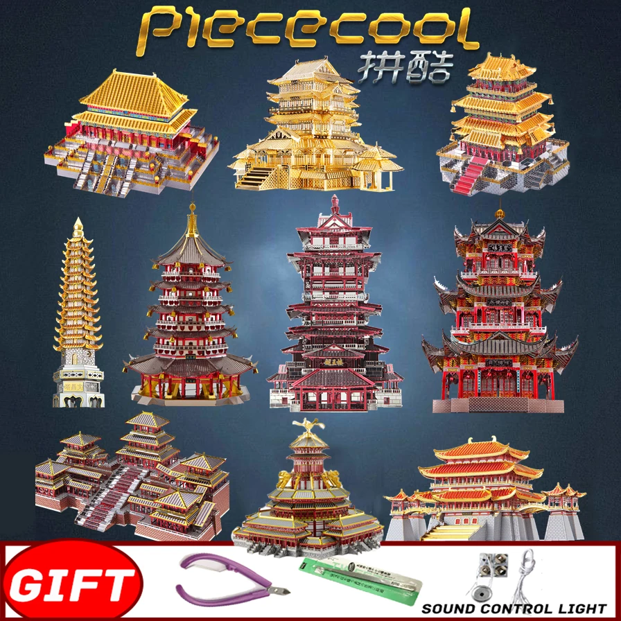 Piececool 3D металлическая головоломка JUYUAN YUEWANG TOWER TENGWANG павильон Ресторан Древняя китайская архитектурная модель Сборка подарок