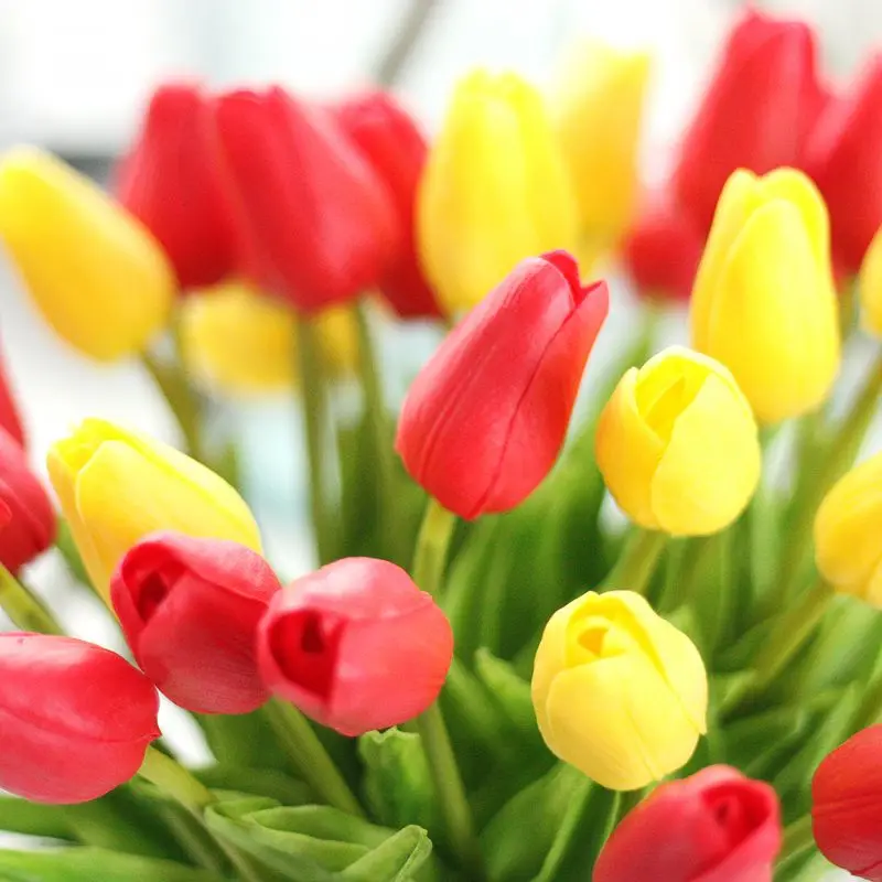 3. Искусственные цветы тюльпана, хорошо сделанные и яркие, выглядят как настоящие