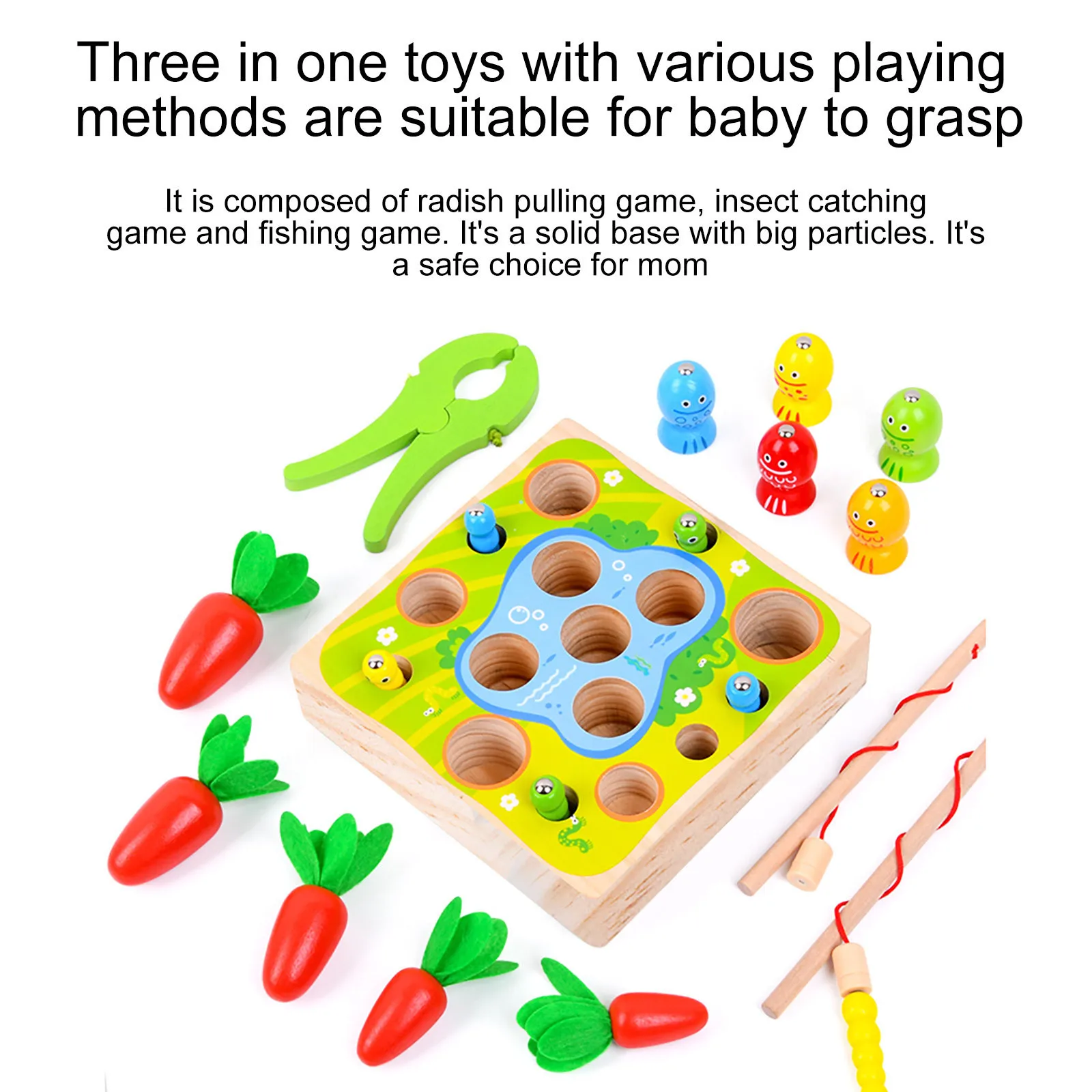 ЭтоСостоит из игры для вытягивания Редьки, игры для ловли насекомых и игры на рыбалке. ЭтоТвердая основа с крупными частицами. Это безопасный выбор для мамы. Три в одномИгрушки, разнообразие игр, подходят для детей.