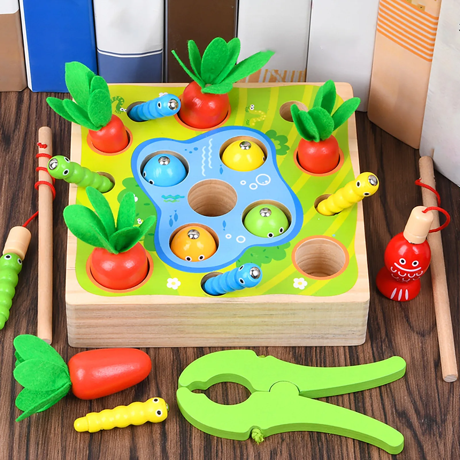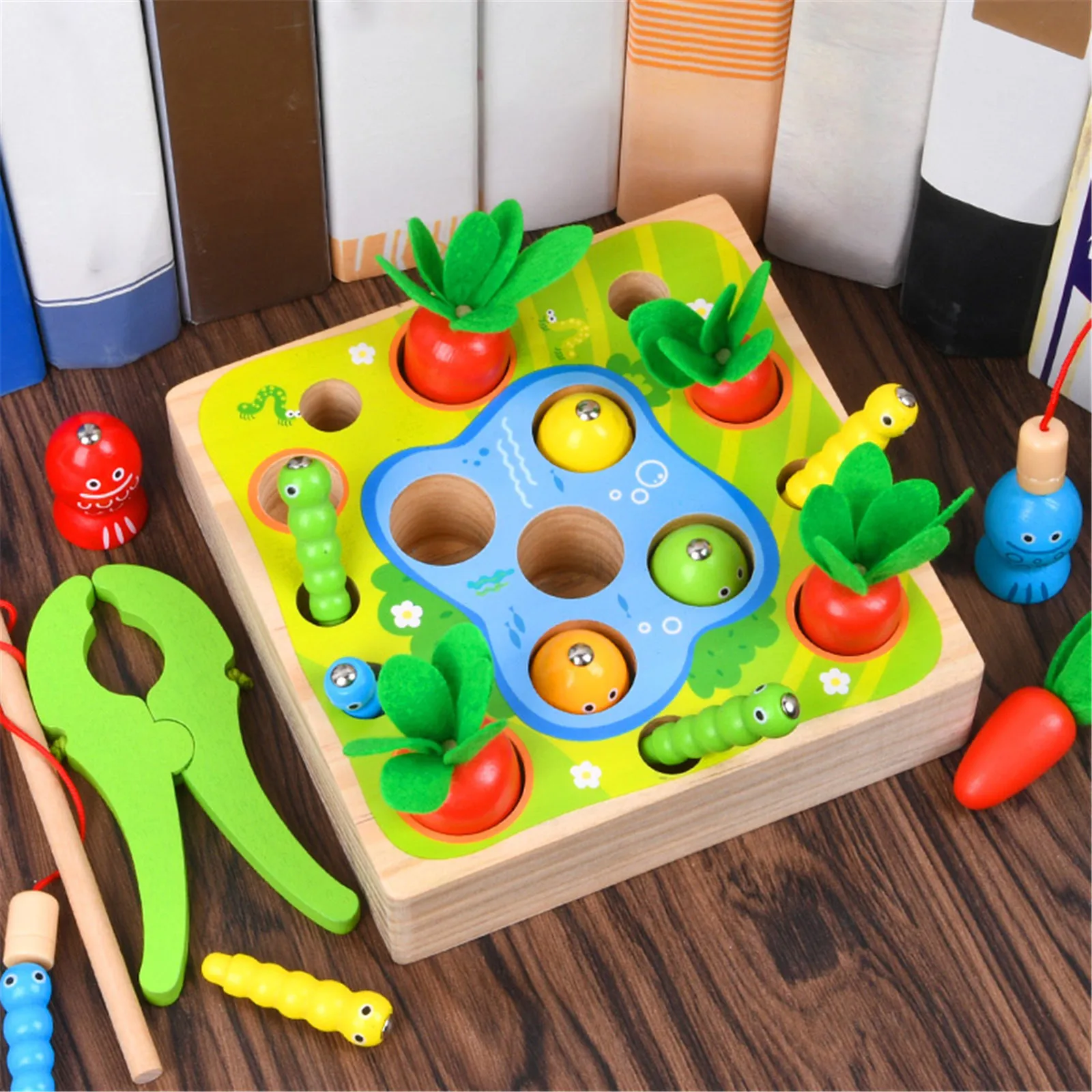 Рыбалка тянуть редьку поймать червь забавная ферма игра Магнитные деревянные развивающие игрушки Дети Обучающие навыки развивающие игрушки
