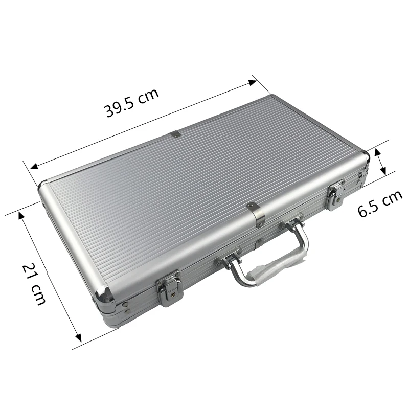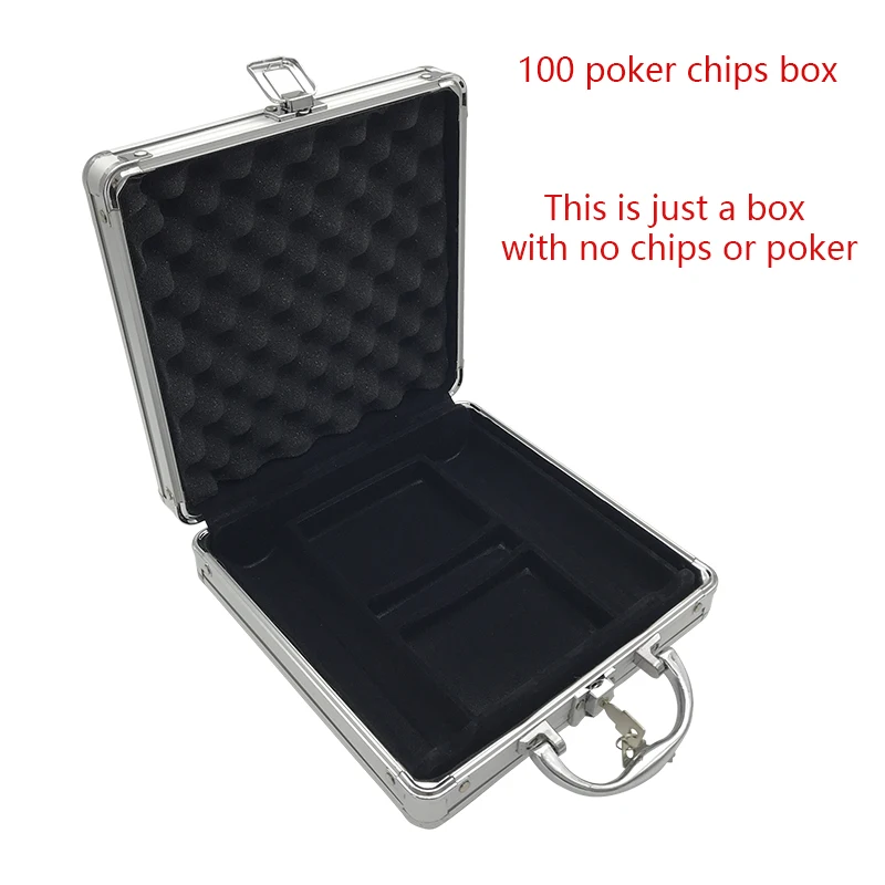 Особенности:1. Это просто коробка без фишек и покера.2. Может вмещать 100/300 фишек.3. Материал l-пластик + алюминиевая коробка (не 100% алюминий).4. Около 0,5/0,8 кг, легко носить с собой.5. С противоскользящим ковриком, высокого качества.6. Оснащен двумя ключами.Комплектация:1 * коробка (это просто коробка)