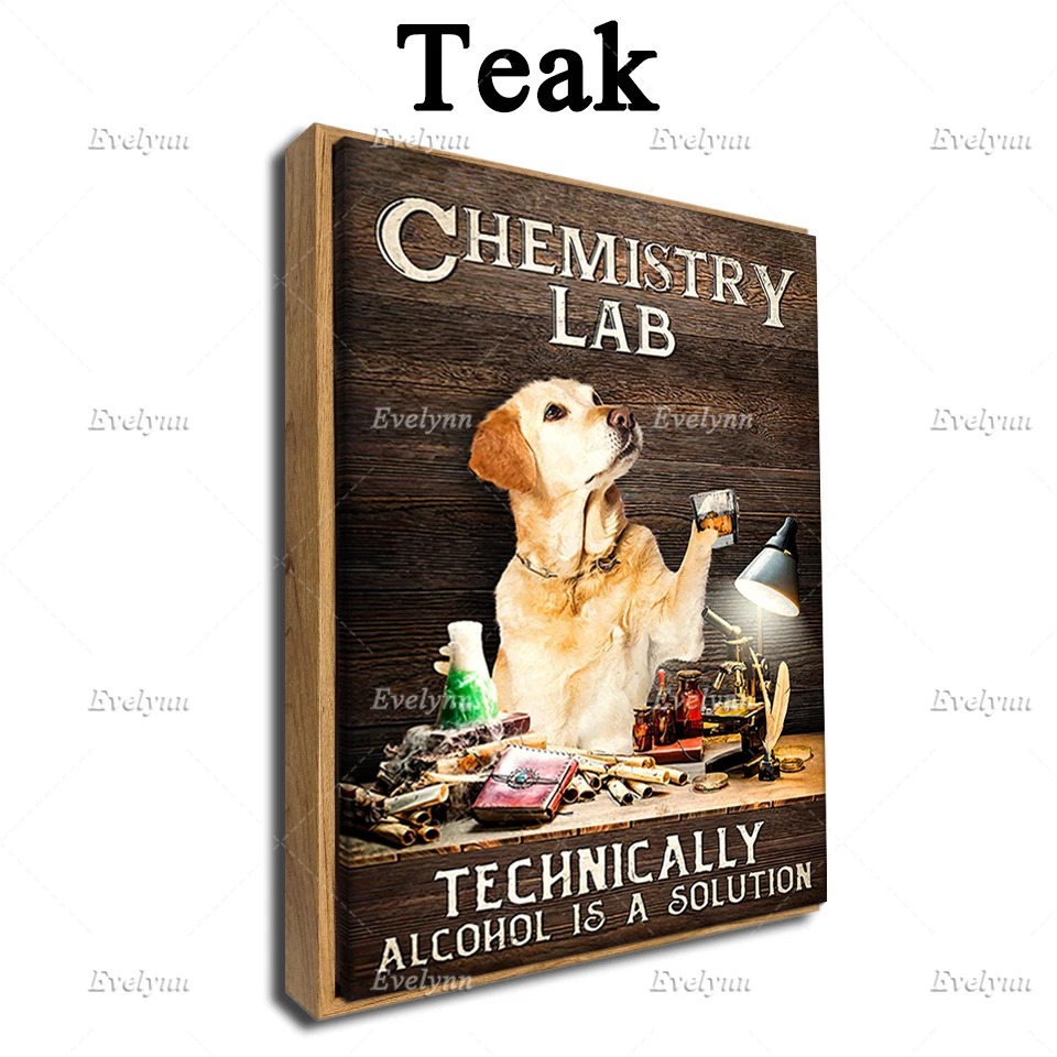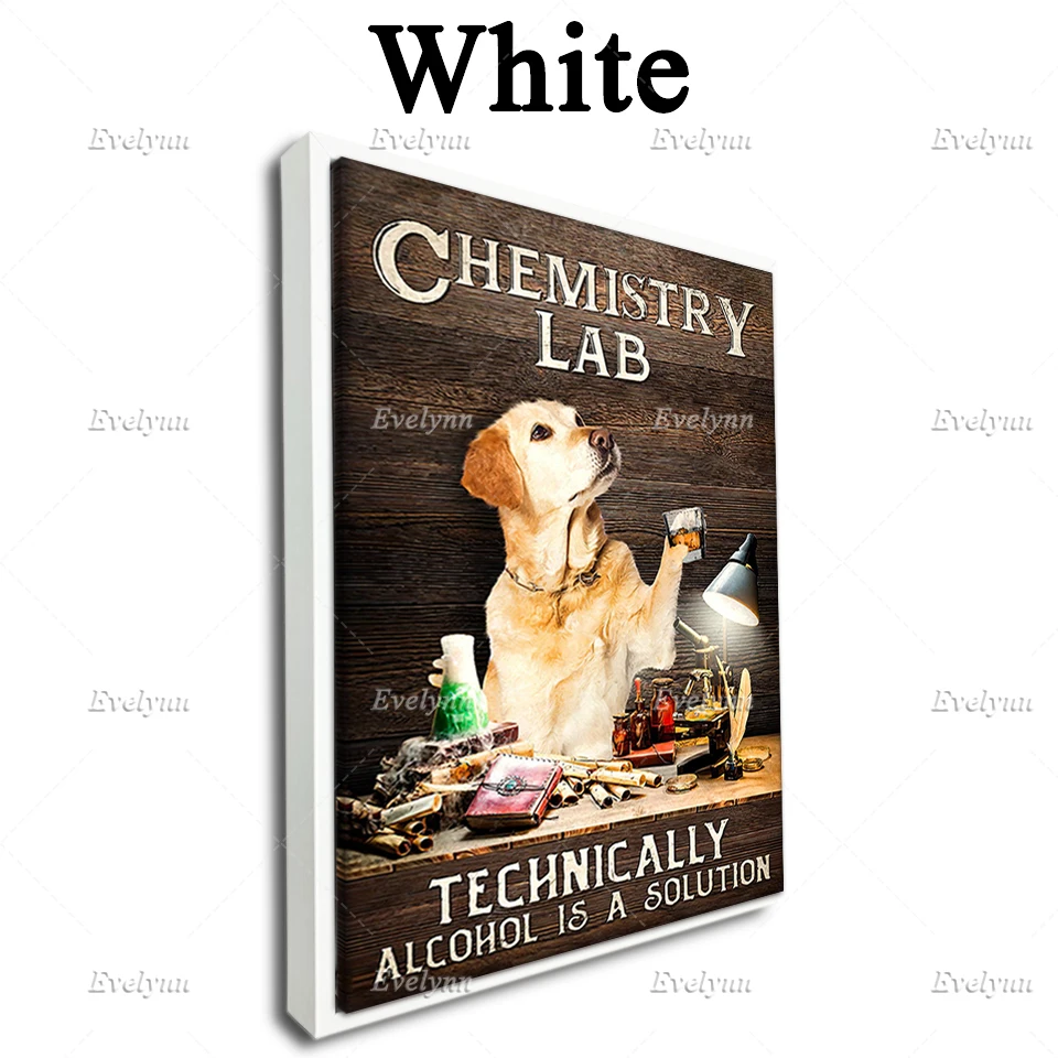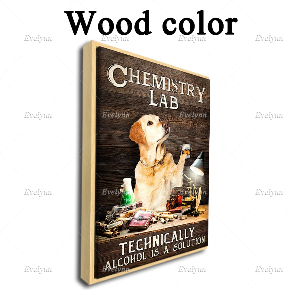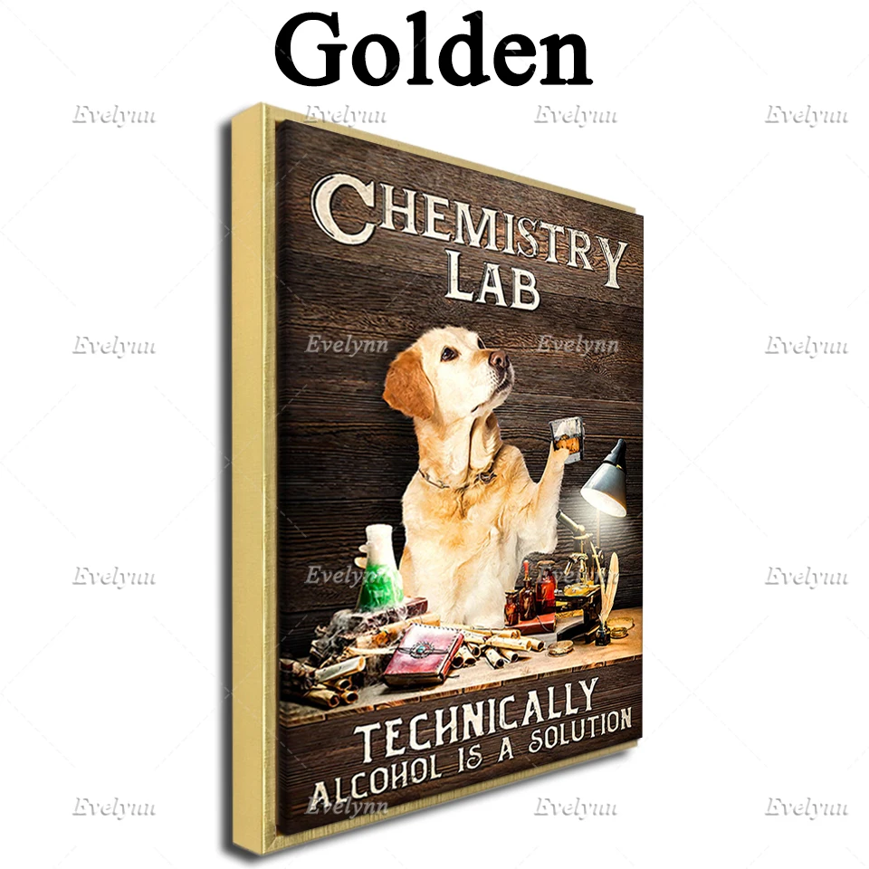 Постер для химии собак золотистого ретривера, химическая лаборатория, технически Алкоголь-это решение, домашний декор, холст, плавающая рамка
