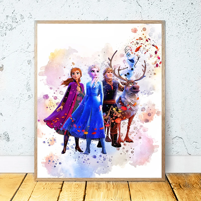 Акварель Холодное сердце 2 Disney Анна Эльза холст картина плакат и принты Disney Принцесса Детская Настенная картина для декора детской комнаты