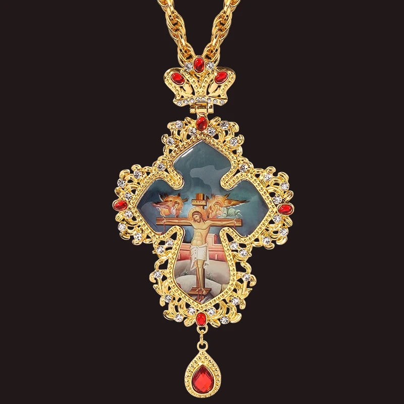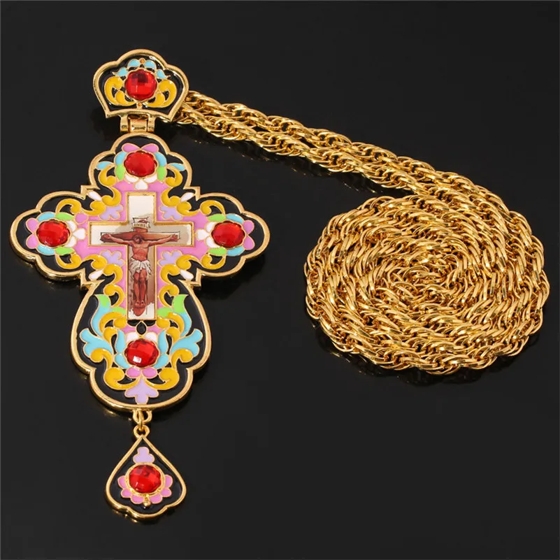 Католический крест из грудные мышцы Цепочки и ожерелья наклейка с Иисусом Цепочки и ожерелья христианской церкви Priest распятие православная религиозных икон подарок
