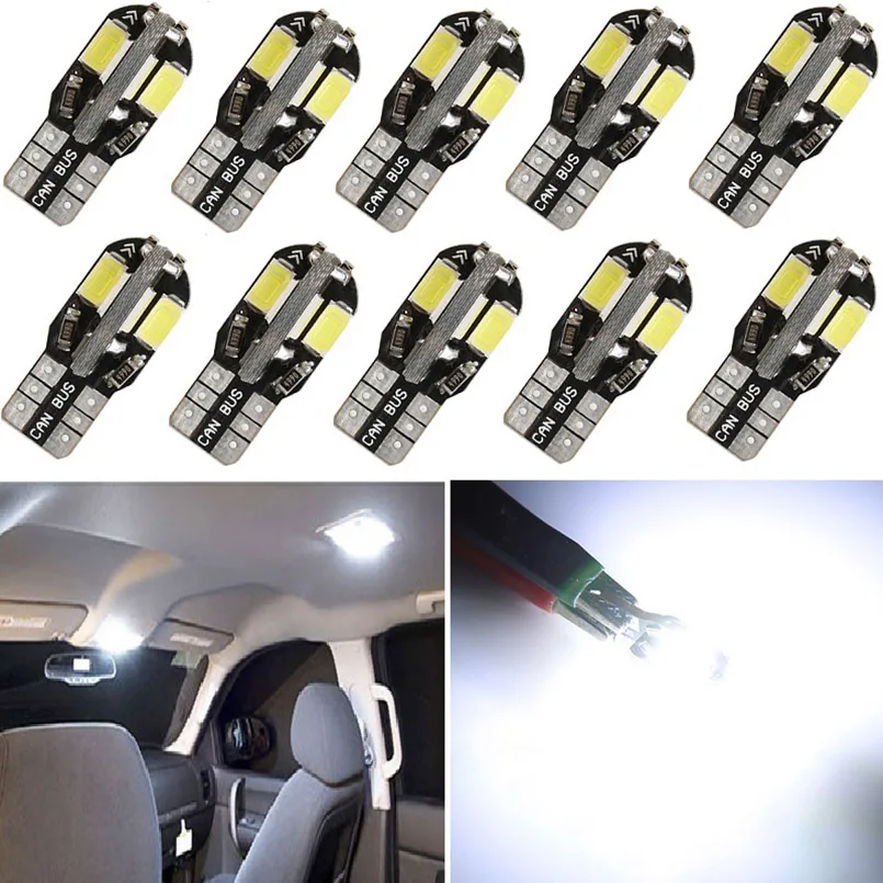 СВЕТОДИОДНЫЕ Лампы Canbus t10 w5w, 10 шт., без ошибок, 194, 168, светодиодсветильник автомобильные лампы для подсветки номерного знака, внутренние лампы для audi a5, vw t5, транспортера, skoda