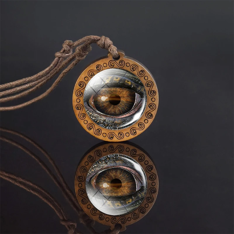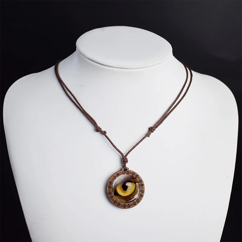 Глаза животных Дракон змея сова кошка тигровые глаза стеклянный кабошон ожерелье ручной работы деревянная подвеска веревка цепочка на шею для мужчин женщин