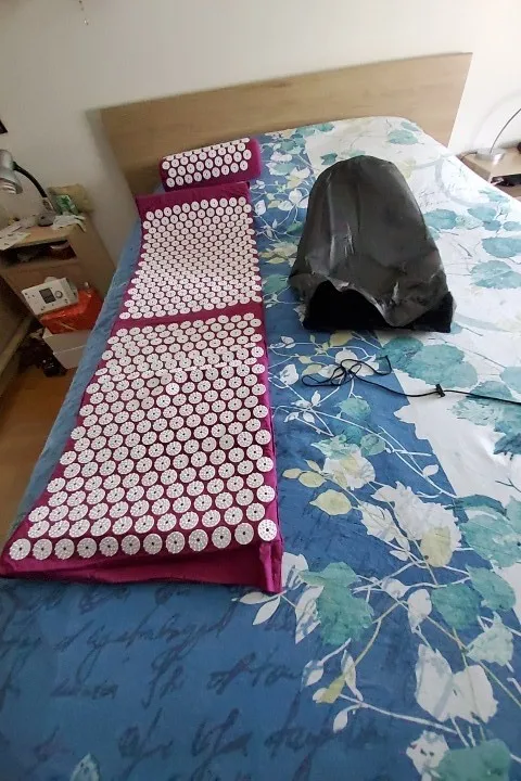1. Коврик и подушка Акупрессура снимают стресс, боли, боли и мышечное напряжение, облегчение боли в шее и увеличивает кровообращение2. Помогает при болях в спине, напряжении, жесткости, бессоннице, усталости и многих других условиях3. Стимулирует точки в китайской традиционной медицине и активирует собственное производство двух веществ, помогает расслабиться.