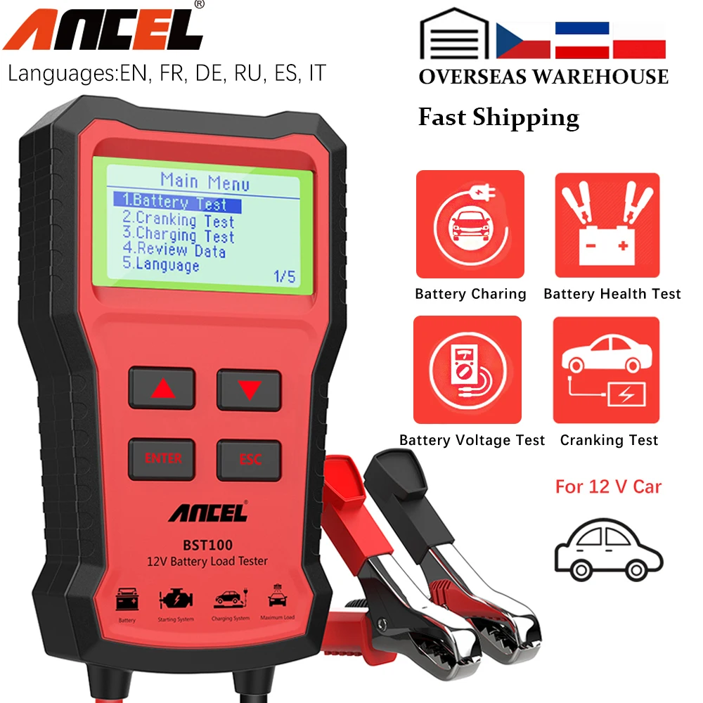 ANCEL BST100 тестер батареи 12 В тестер автомобильного аккумулятора анализатор зарядного устройства ПРОВЕРКА автомобильной подзарядки крикуит Тестер нагрузки