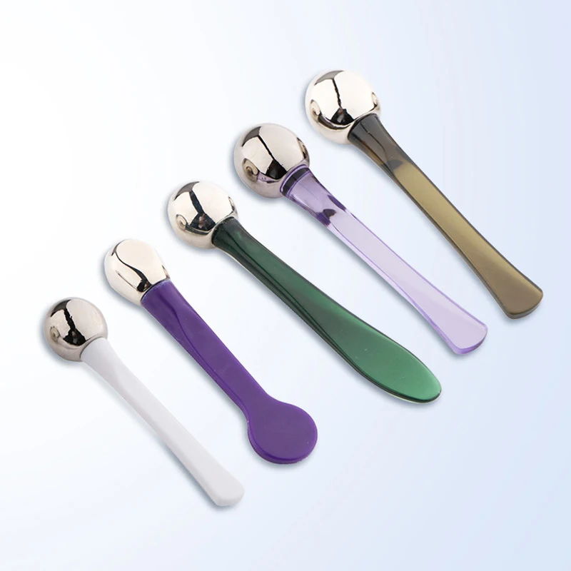 У этого массажера два разных конца. Один конец-ложка для получения крема, а другой-Массажная палочка для глаз. С одной стороны, это снимает усталость глаз, глазные нервы, уплотняет кожу вокруг глаз и устраняет морщины. С другой стороны, его конец ложки может взять и импортировать крем без загрязнения крема.