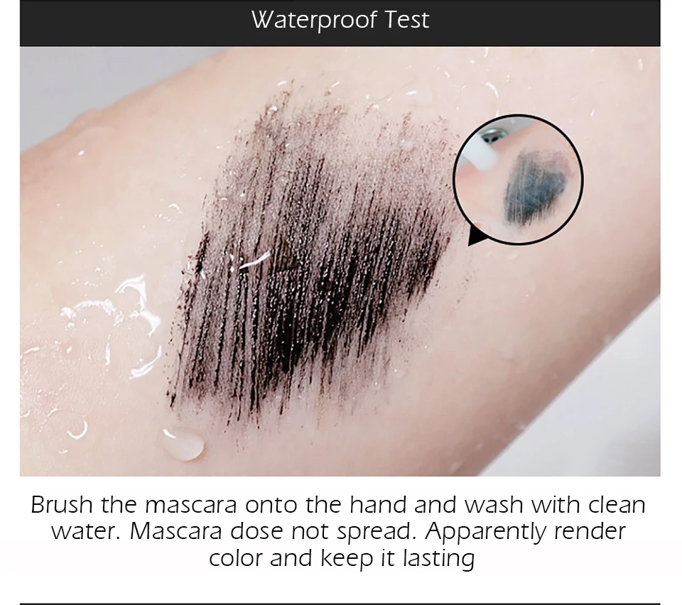 Нанесите тушь на руку и смойте чистой водой. Не распределяйте дозу туши. Видимо, передача цвета и сохранение стойкости. Тестом снятия макияжа Мягкая вода может удалить макияж. Ватные диски. Удалите макияж. Это не может оставаться легким. Это не пигментация.