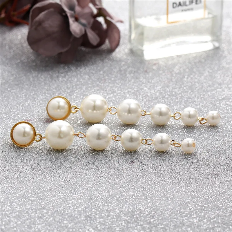 Женские длинные серьги с искусственным жемчугом, элегантные массивные серьги-подвески с имитацией жемчуга, Жемчужная Нить, в вечернем и свадебном стиле