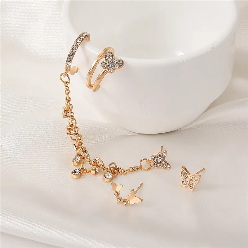 Комплект женских серег-гвоздиков KOtik 4 парыуп. серьги-подвески золотого цвета с кристаллами и бабочками для женщин модные ювелирные украшения
