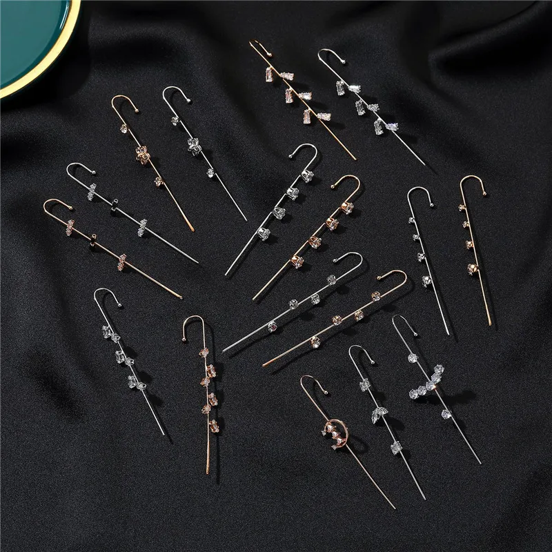 Новый ухо обруч на гусеничном ходу крюк серьги для женщин, корейский стиль с украшением в виде кристаллов с разъемом Lightning, серьги-гвоздики с личность альпинист, серьги, ювелирное изделие, подарок