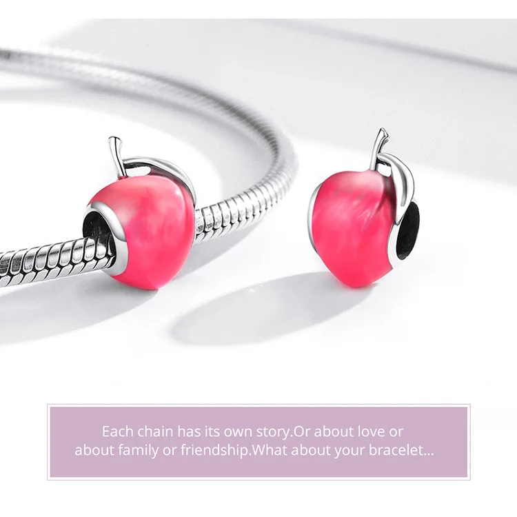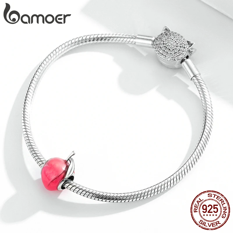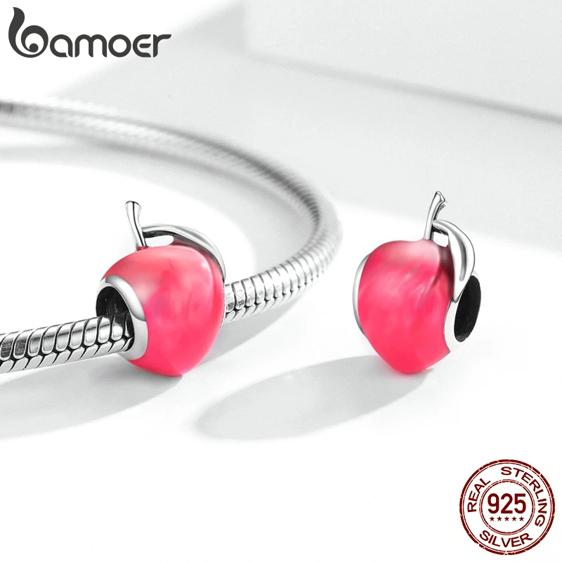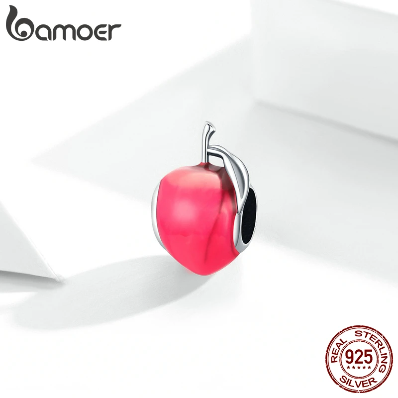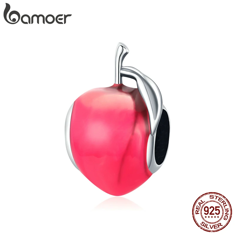 Шарм bamoer для браслета и ожерелья Женский, серебристый, с эмалью, в форме персика, фруктов, SCC1834