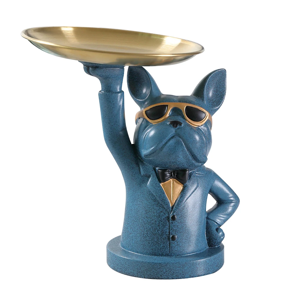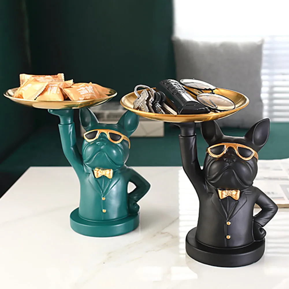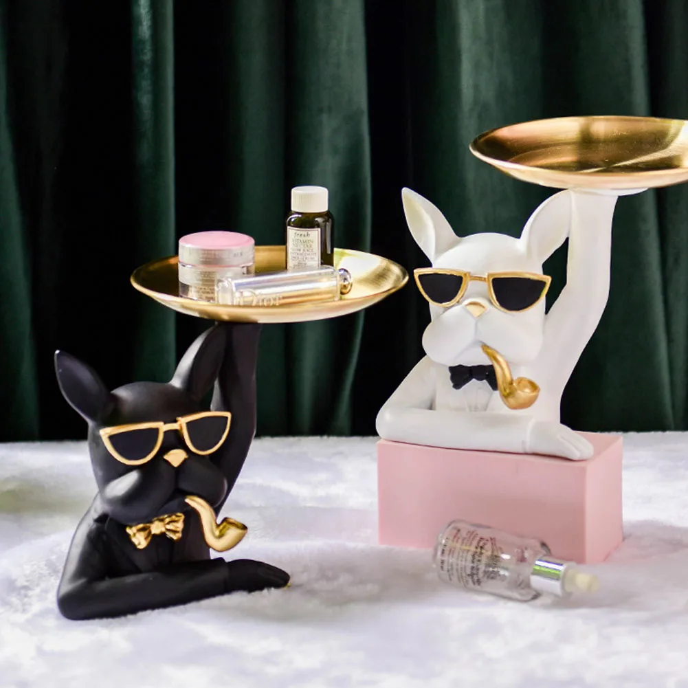 Статуэтка в скандинавском стиле для хранения бульдога, роскошная статуэтка, поднос для фруктов, закусок, конфет, поднос для входного стола, брелок для монет, скульптура для украшения дома