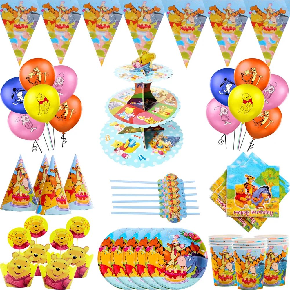 Малыш пользу на день рождения вечерние поставки Disney "Винни-Пух" тема, комплект для малышей, платье для дня рождения комплект поставки бумажные стаканчики, посуда, соломинки, скатерть