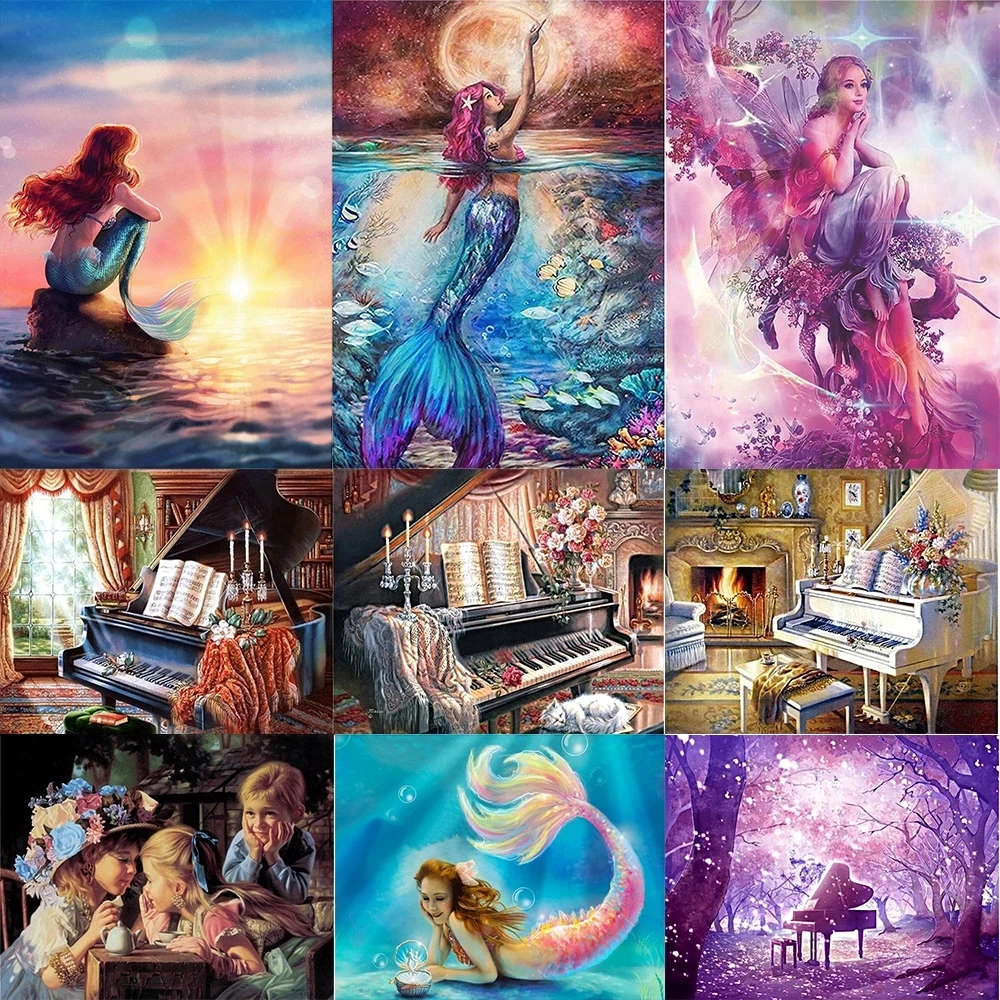 5D Diy Алмазная картина крестиком набор живое искусство фортепиано фантазия Русалка Алмазная Картина Настенная для домашнего интерьера украшение